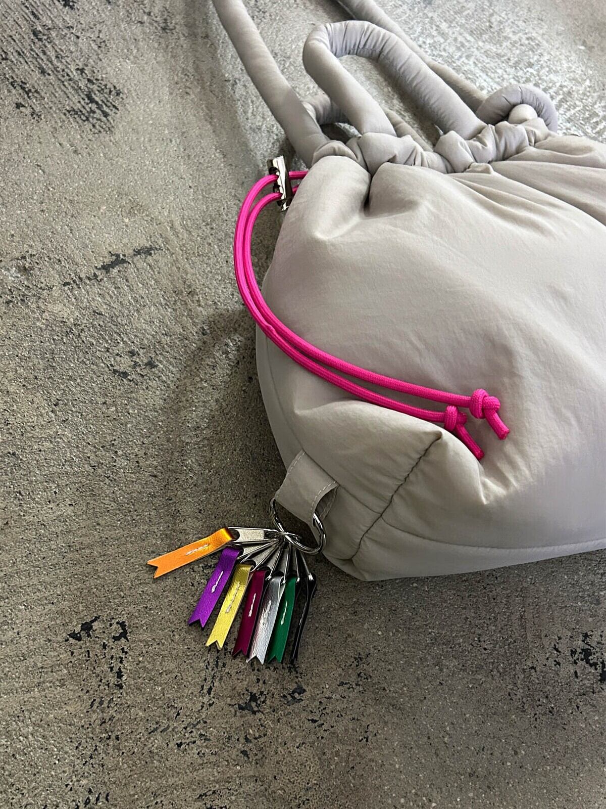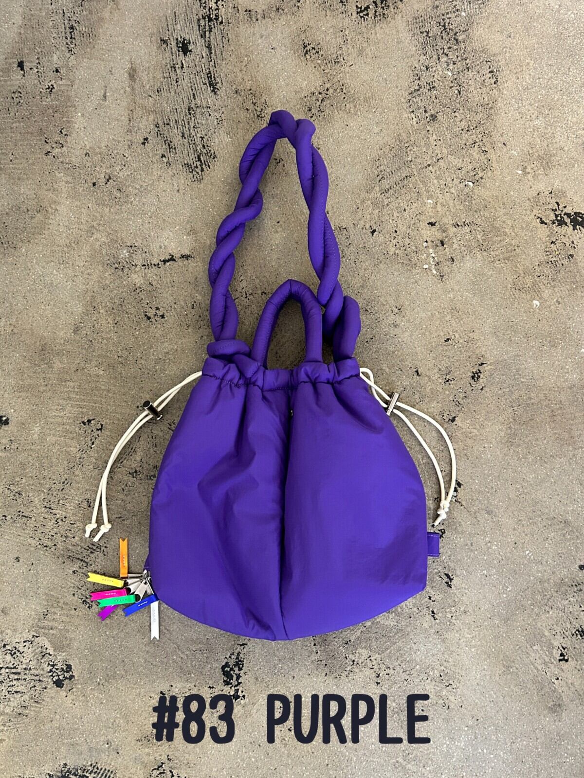 ショルダーをなが〜く作り、ねじねじチェーン状にしたりななめ掛けしたりとアレンジは無限大☆