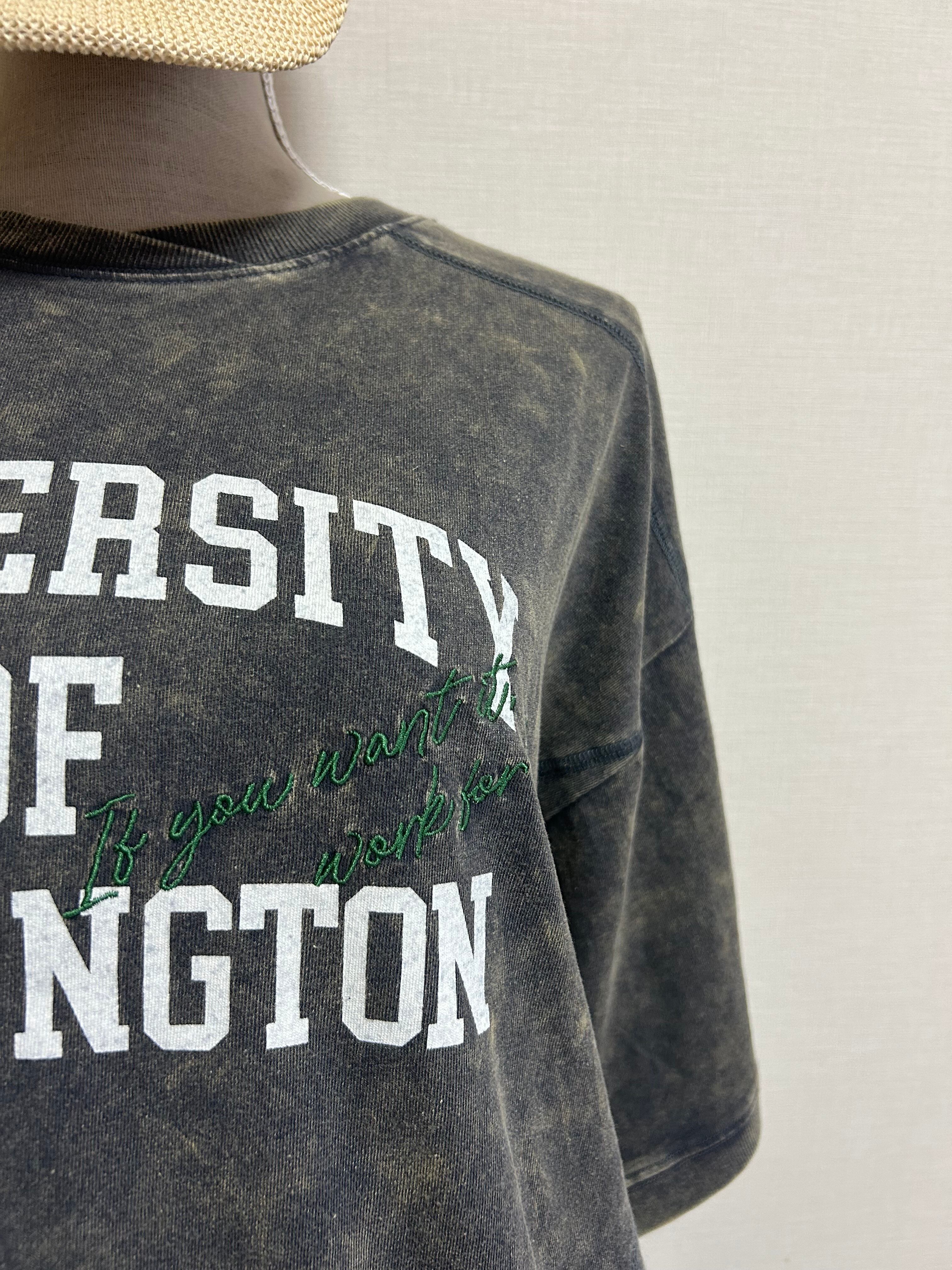 ヴィンテージ感漂うスノーウォッシュロゴプリント+刺繍Tシャツ。