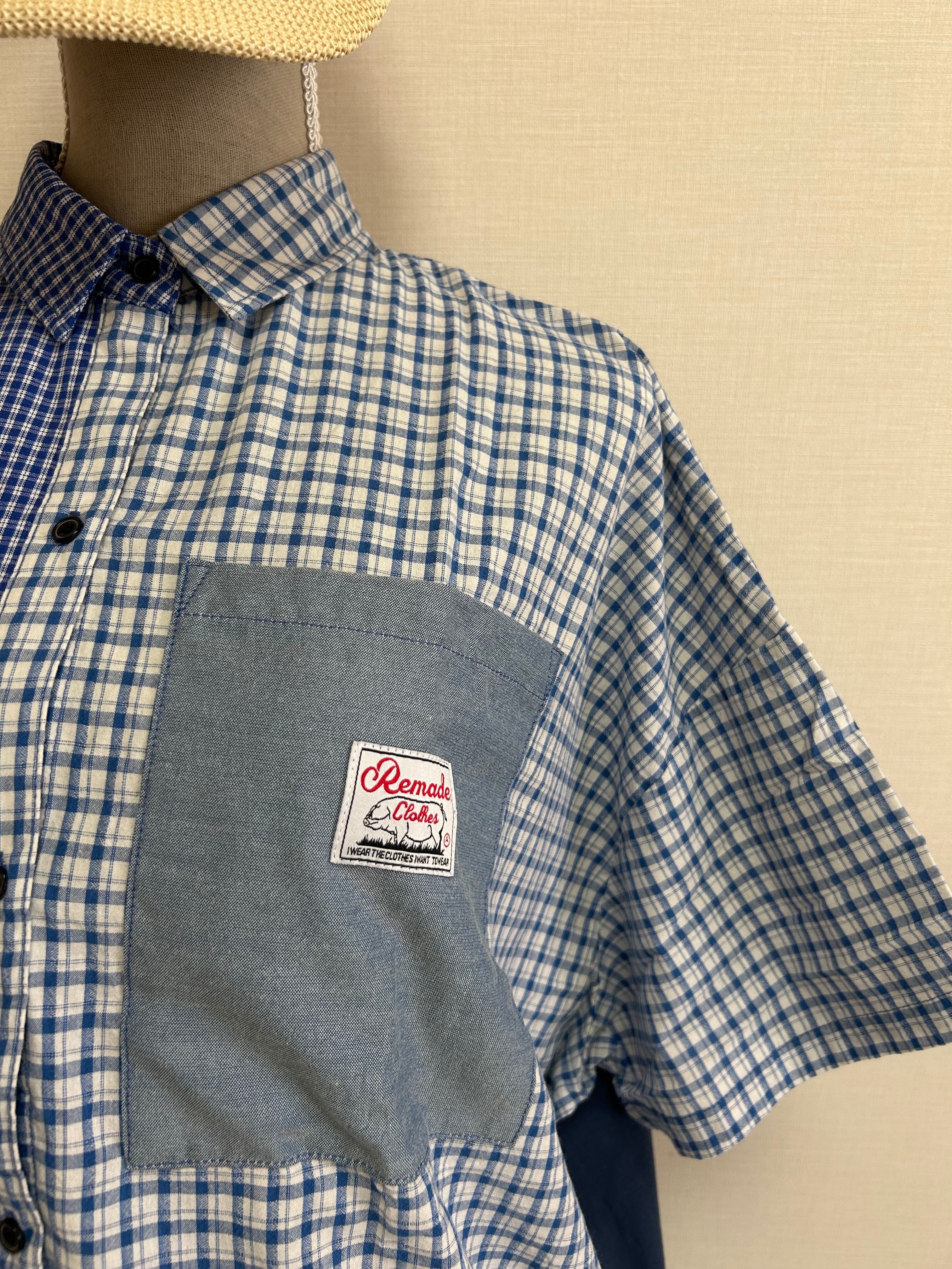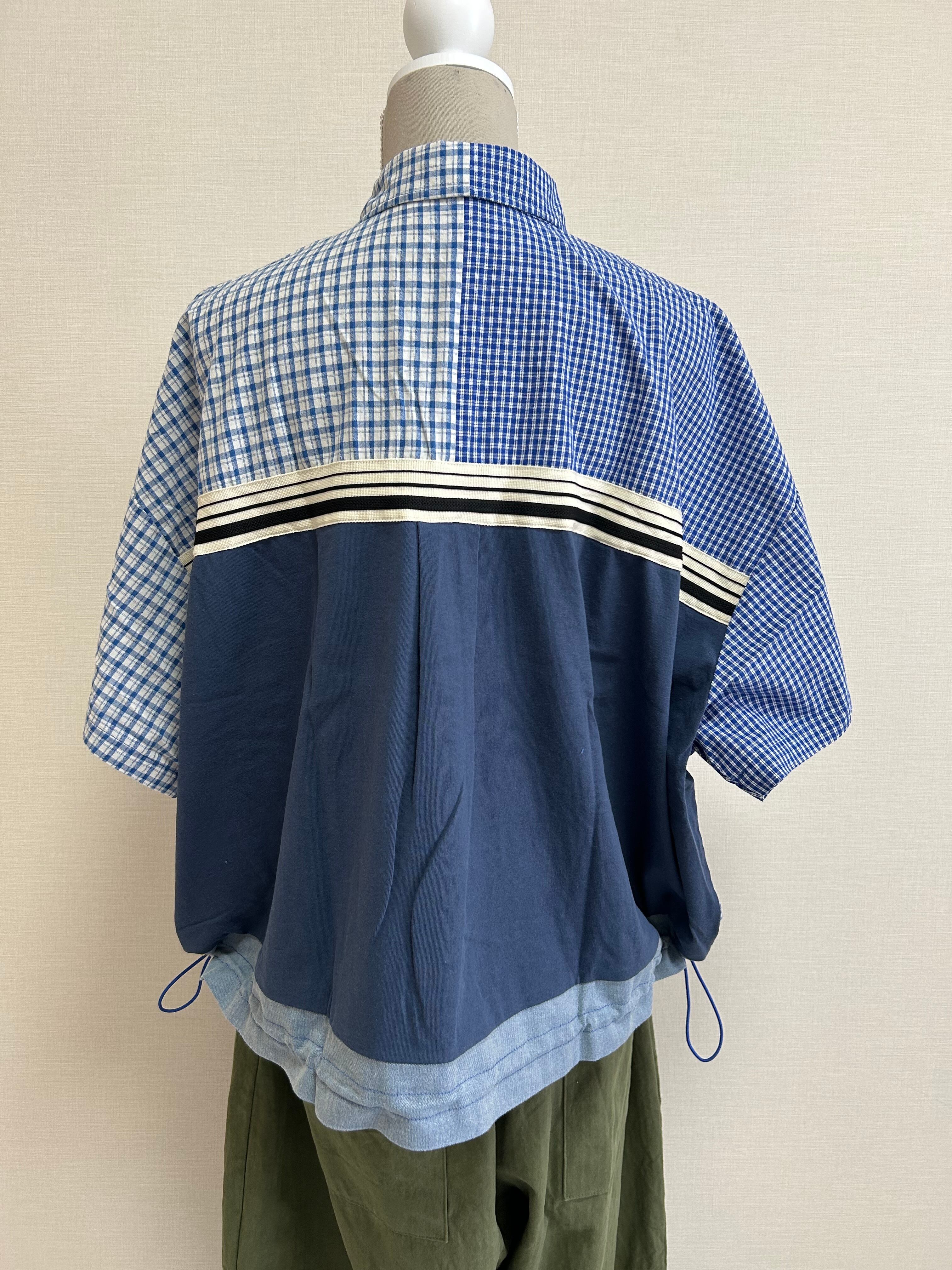 チェックシャツ / リメイク風 / 切り替えシャツ / 異素材ミックス / ドロストシャツ / ギンガムチェック / バルーンシルエット / ナチュラルカジュアル / デザインシャツ / 大人カジュアル / コットンシャツ / 布帛切り替え / 個性派トップス / 春夏トップス / ワイドシルエット / 前後切り替え / ユニセックスライク