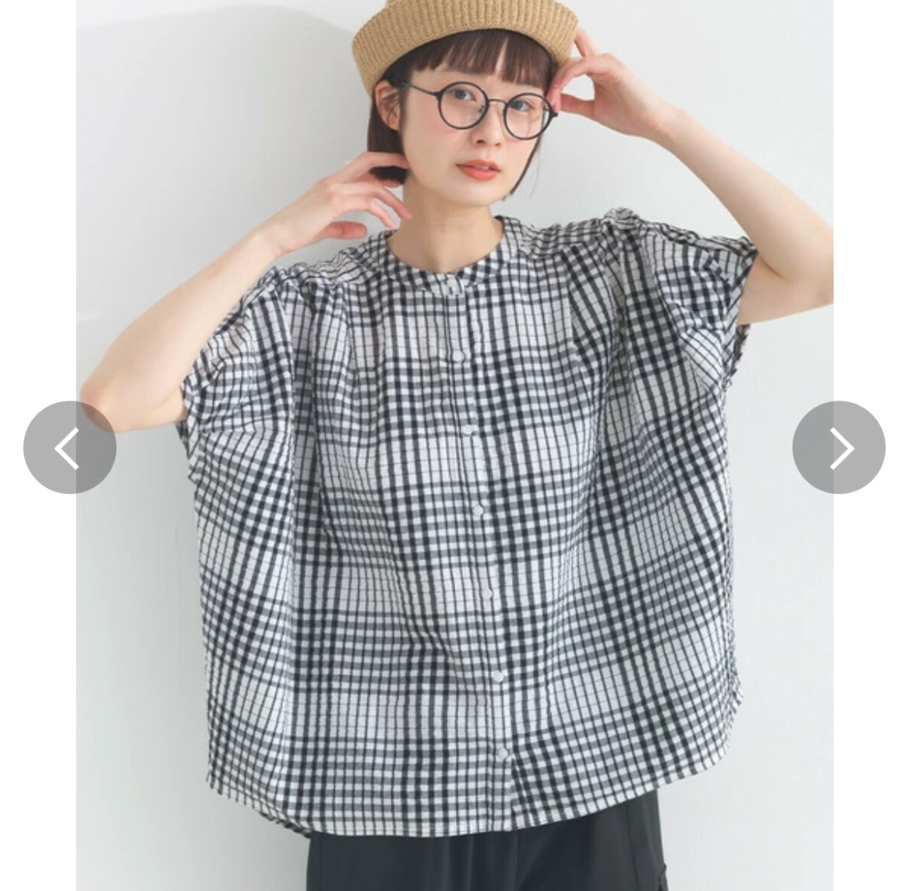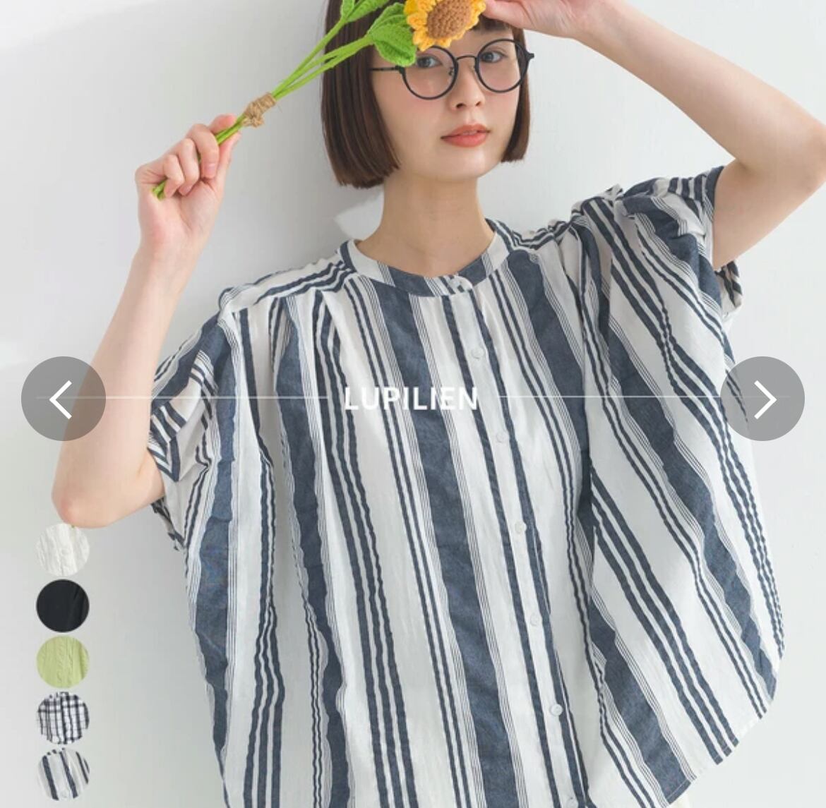 lupilien シアサッカー バックタックビッグドルマンブラウス ブラックチェック【2025年春夏新作】
