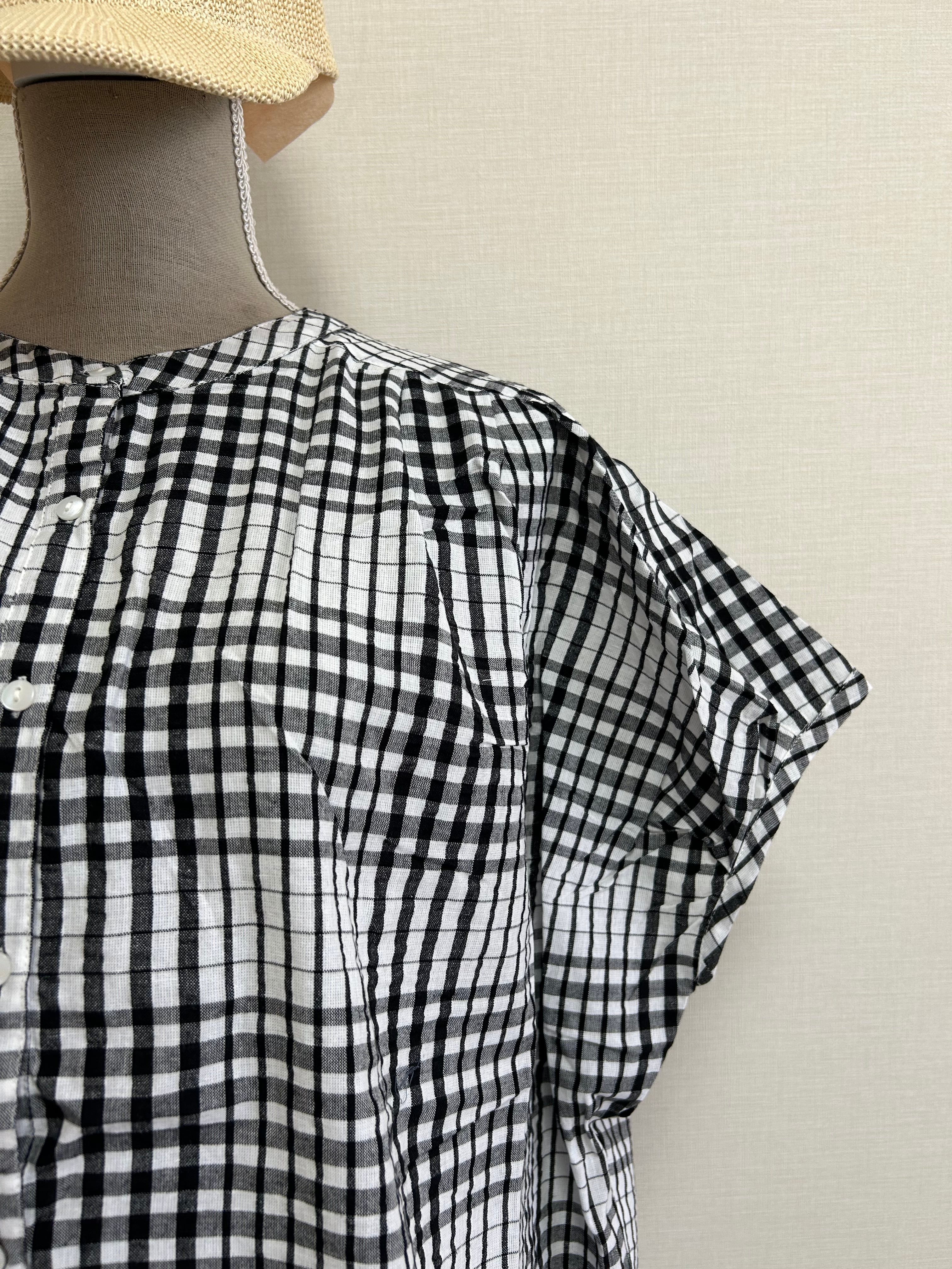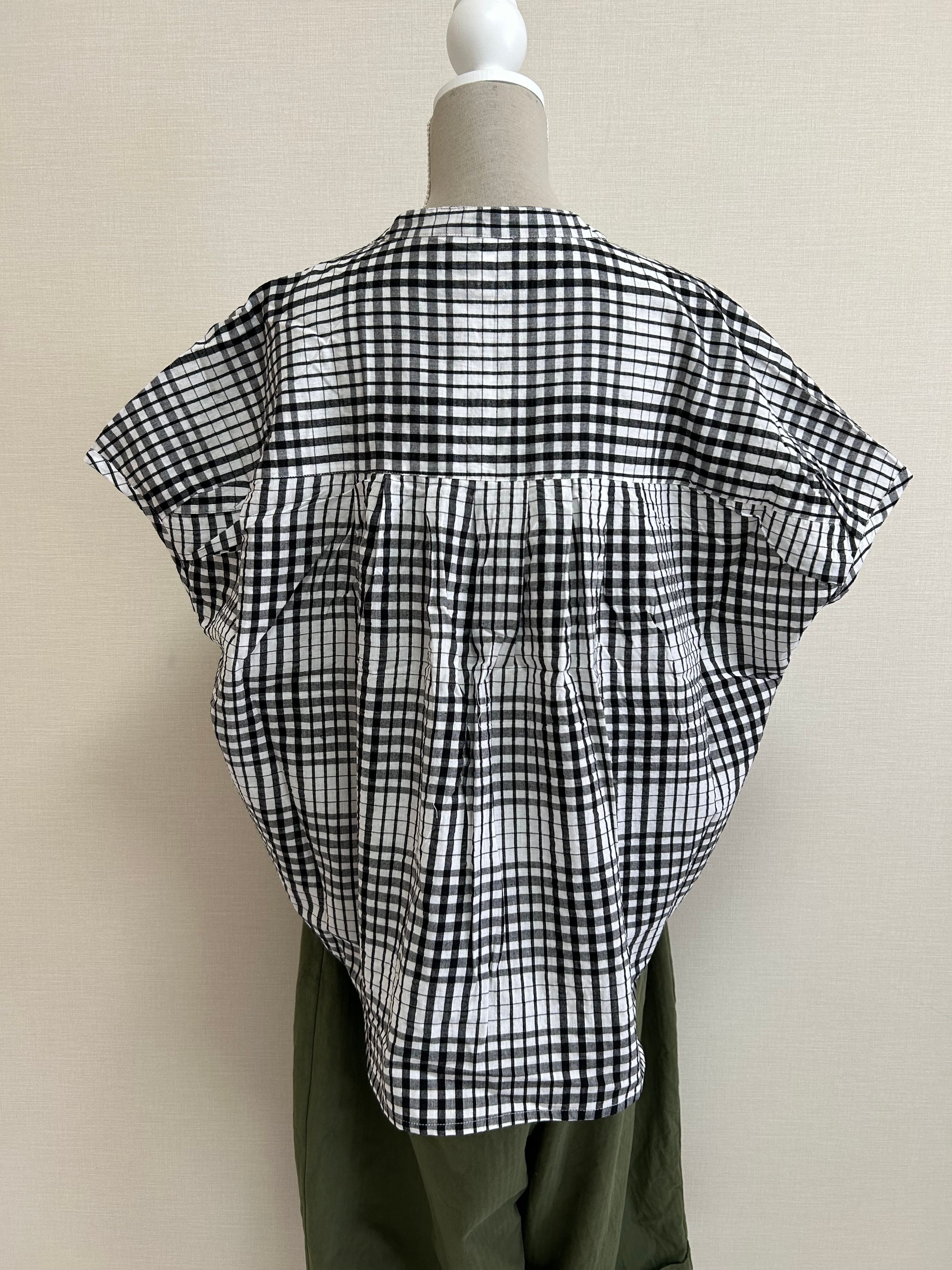 インド綿 / シアサッカー / バックタック / ドルマンスリーブ / ビッグシルエット / 涼しいトップス / 夏コーデ / ナチュラル服 / 体型カバー / 着映えブラウス / ストライプ / チェック / レディースブラウス / 軽い素材 / 綿100%