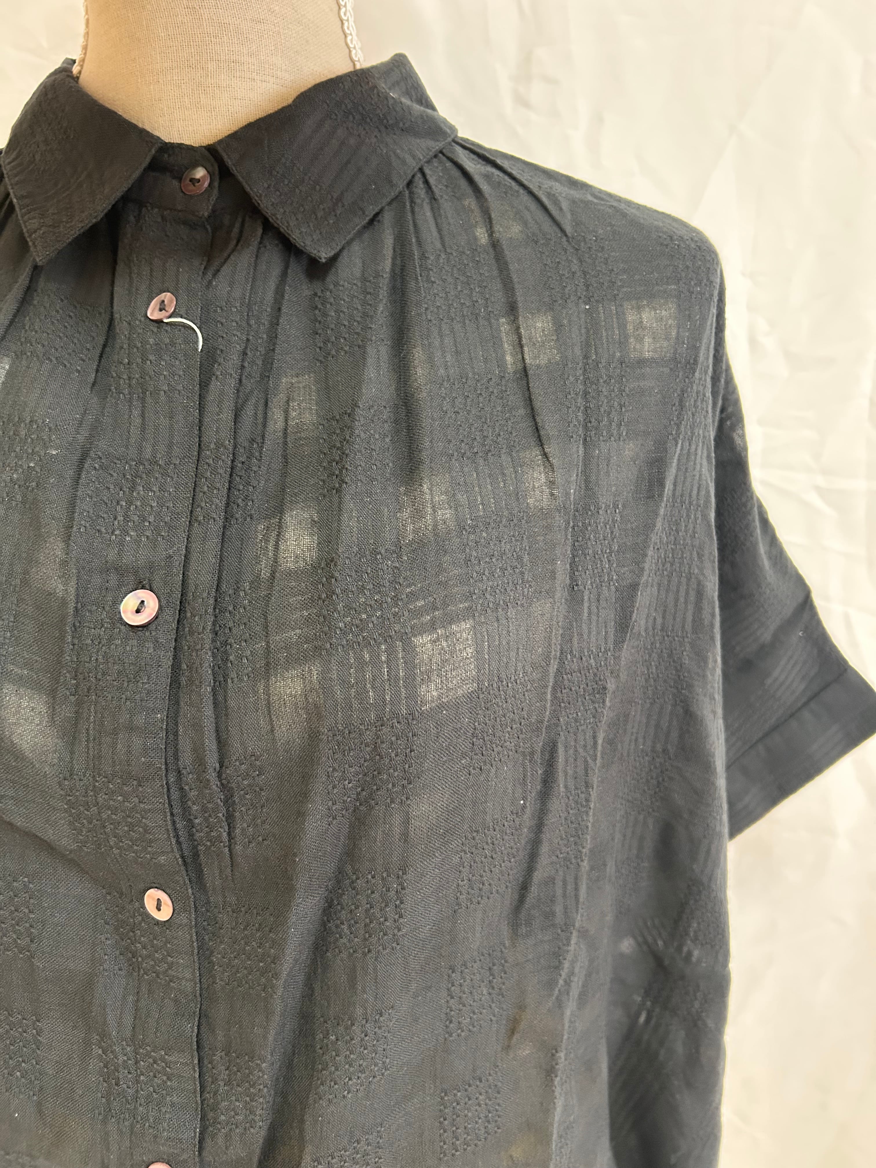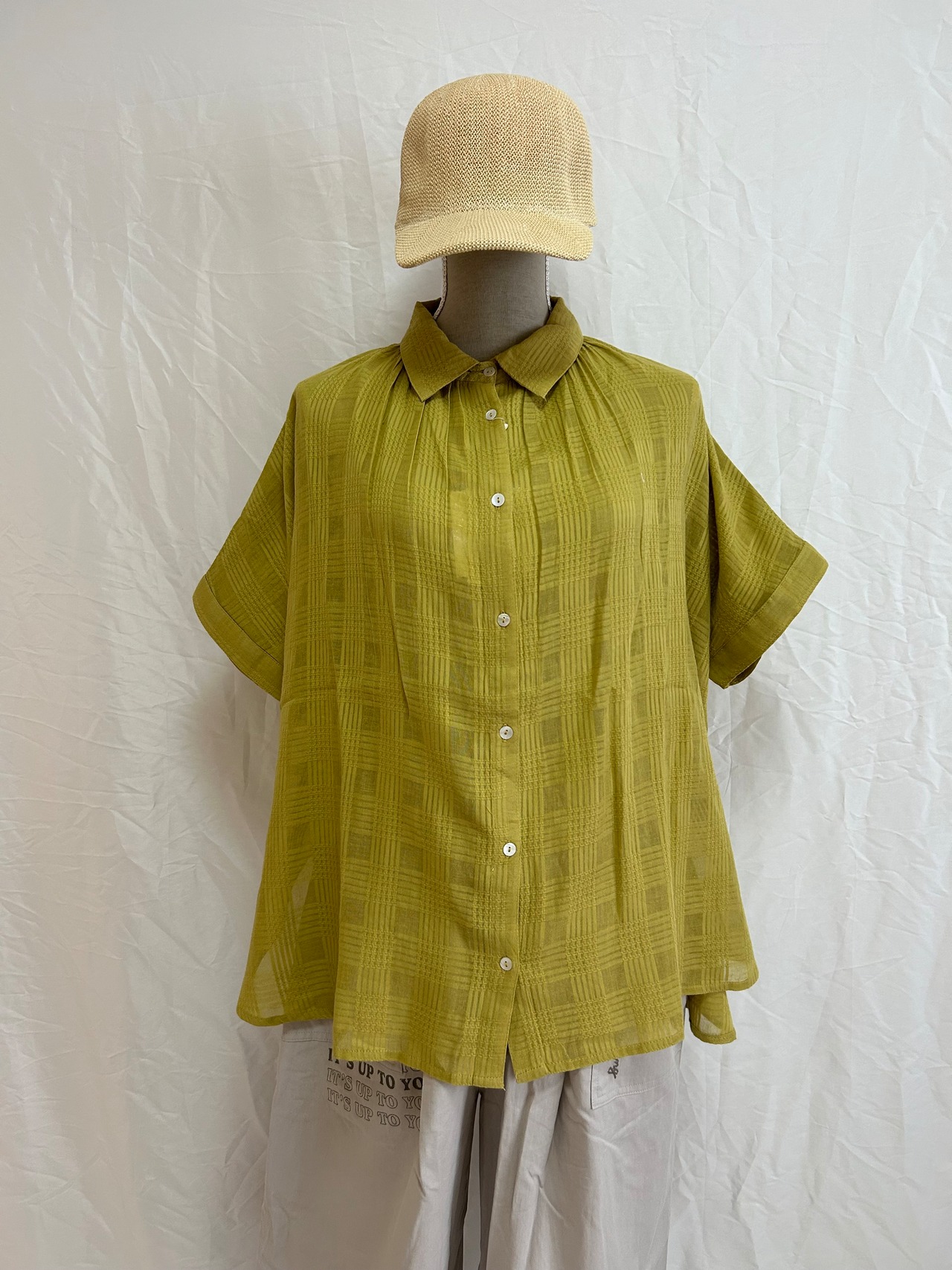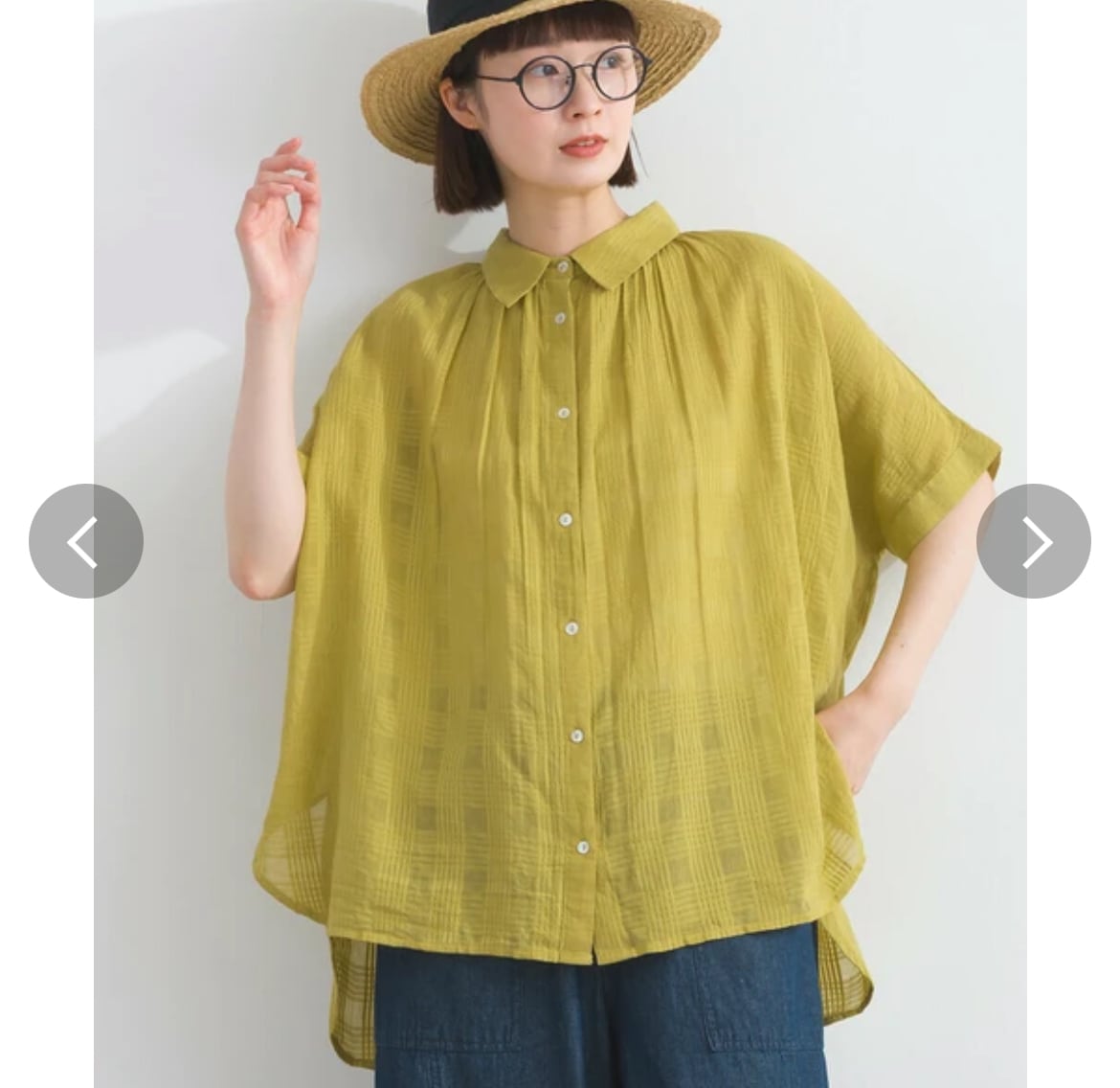 シアーシャツ / チェック柄シャツ / ドルマンスリーブ / ゆったりシャツ / ロングシャツ / ナチュラルコーデ / 軽量トップス / 体型カバー / 透け感トップス / 羽織りシャツ / コットンシャツ / 夏の羽織り / ナチュラルシャツ / 前開きシャツ