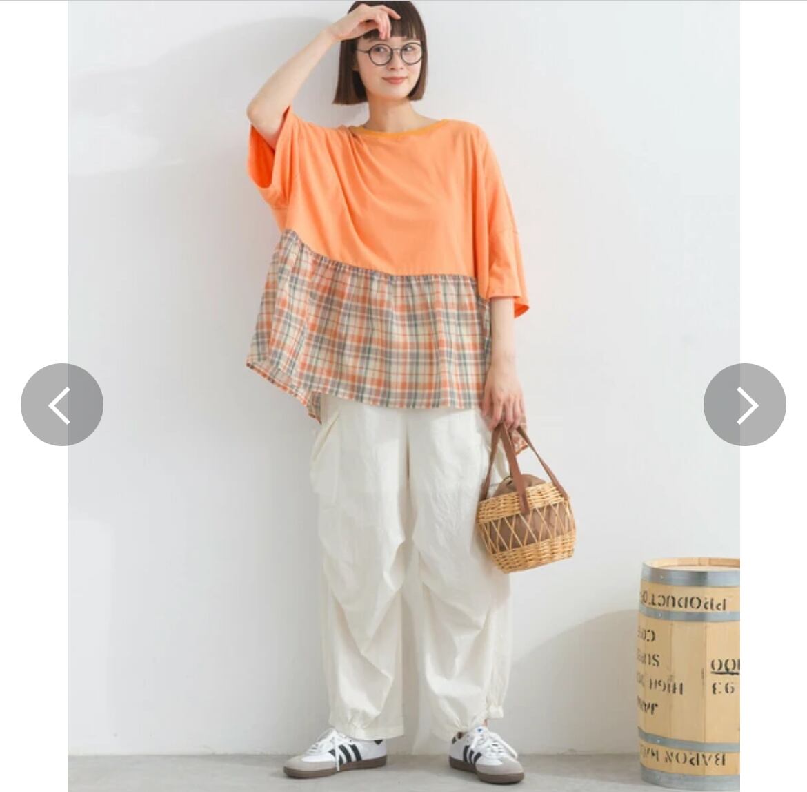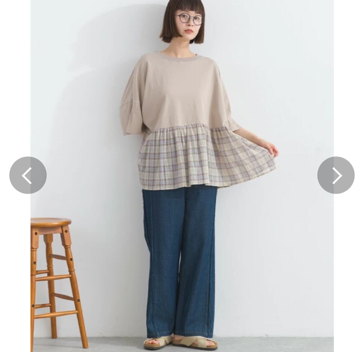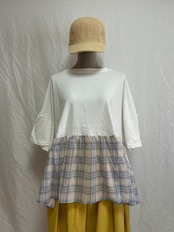 裾は軽やかで透け感のある布帛チェック素材との異素材ドッキング。