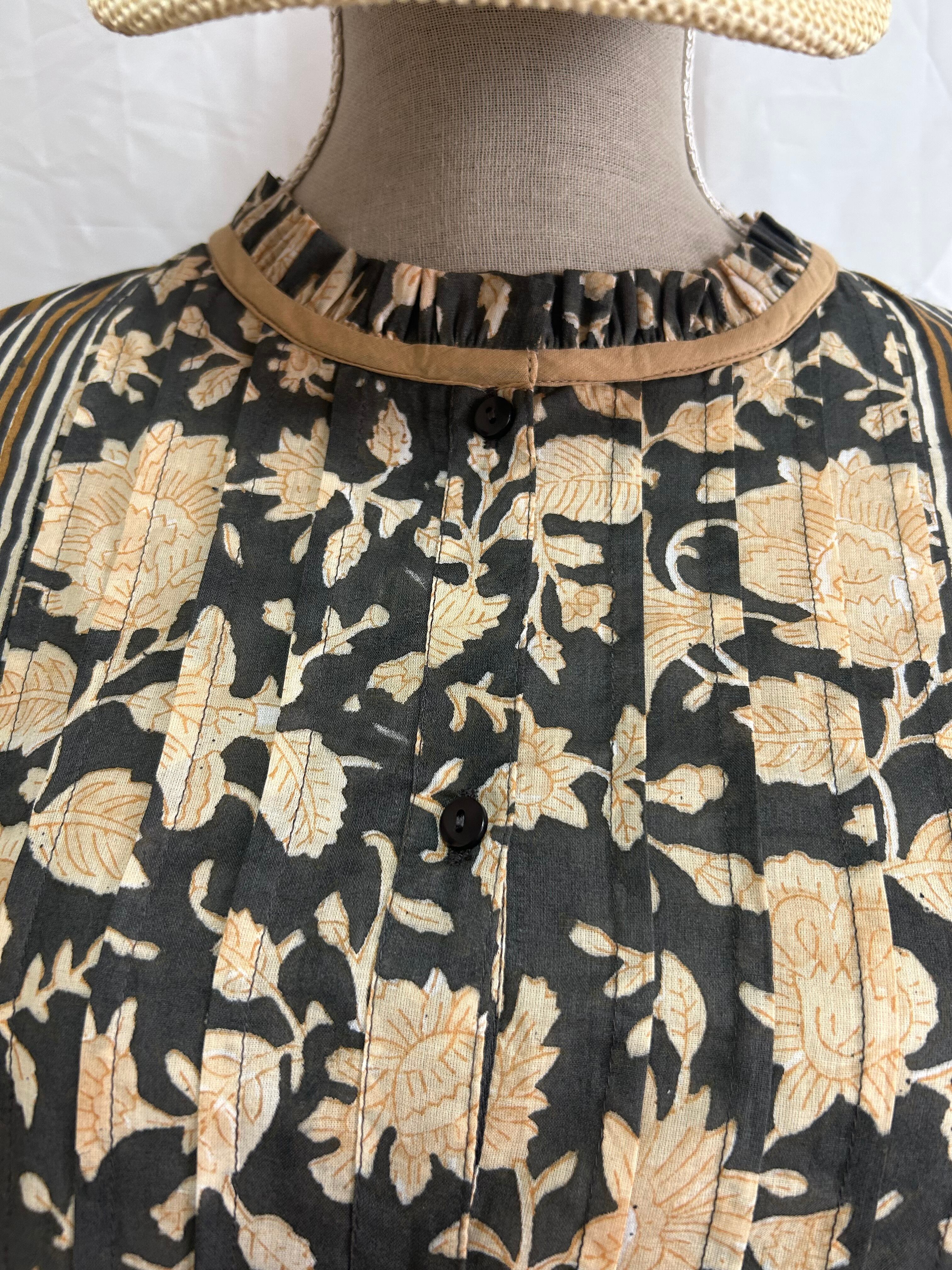 ●ブロックプリント フリルブラウス