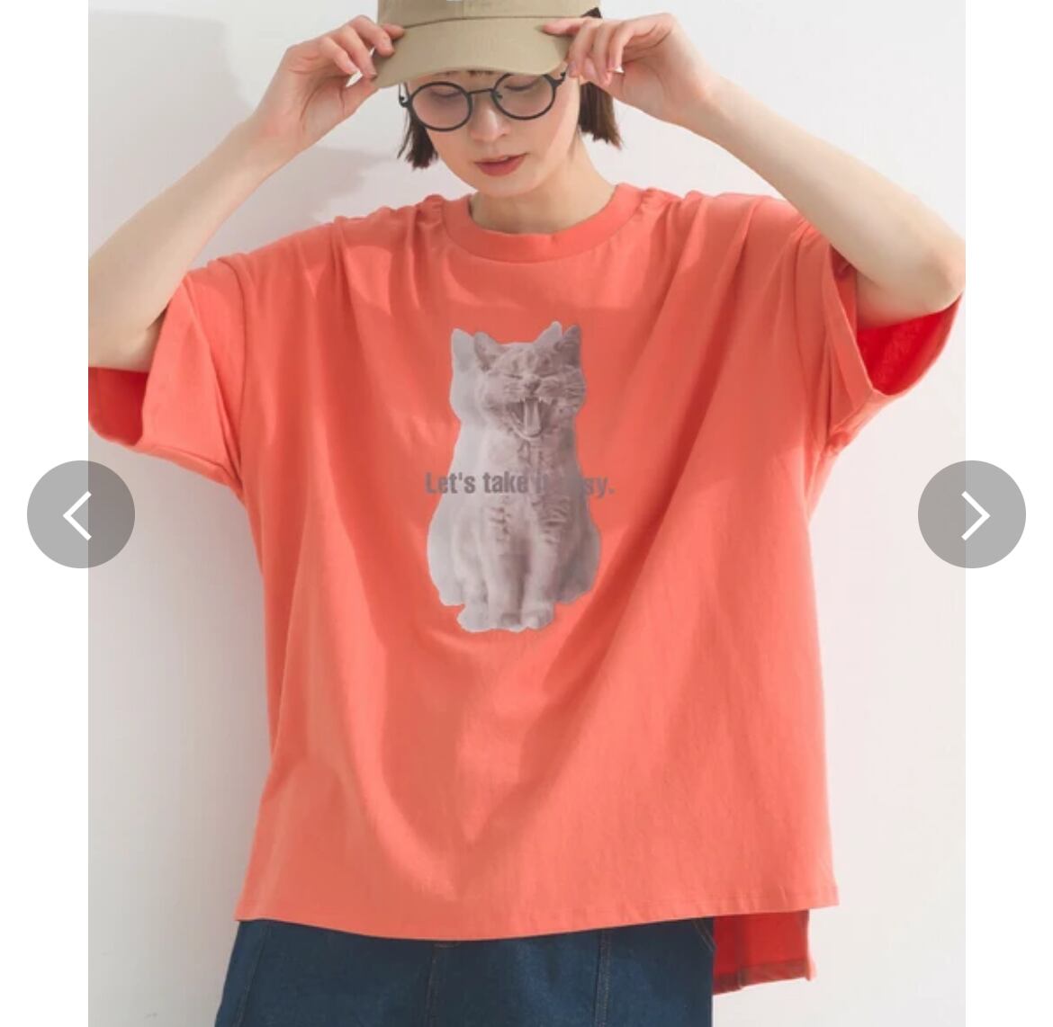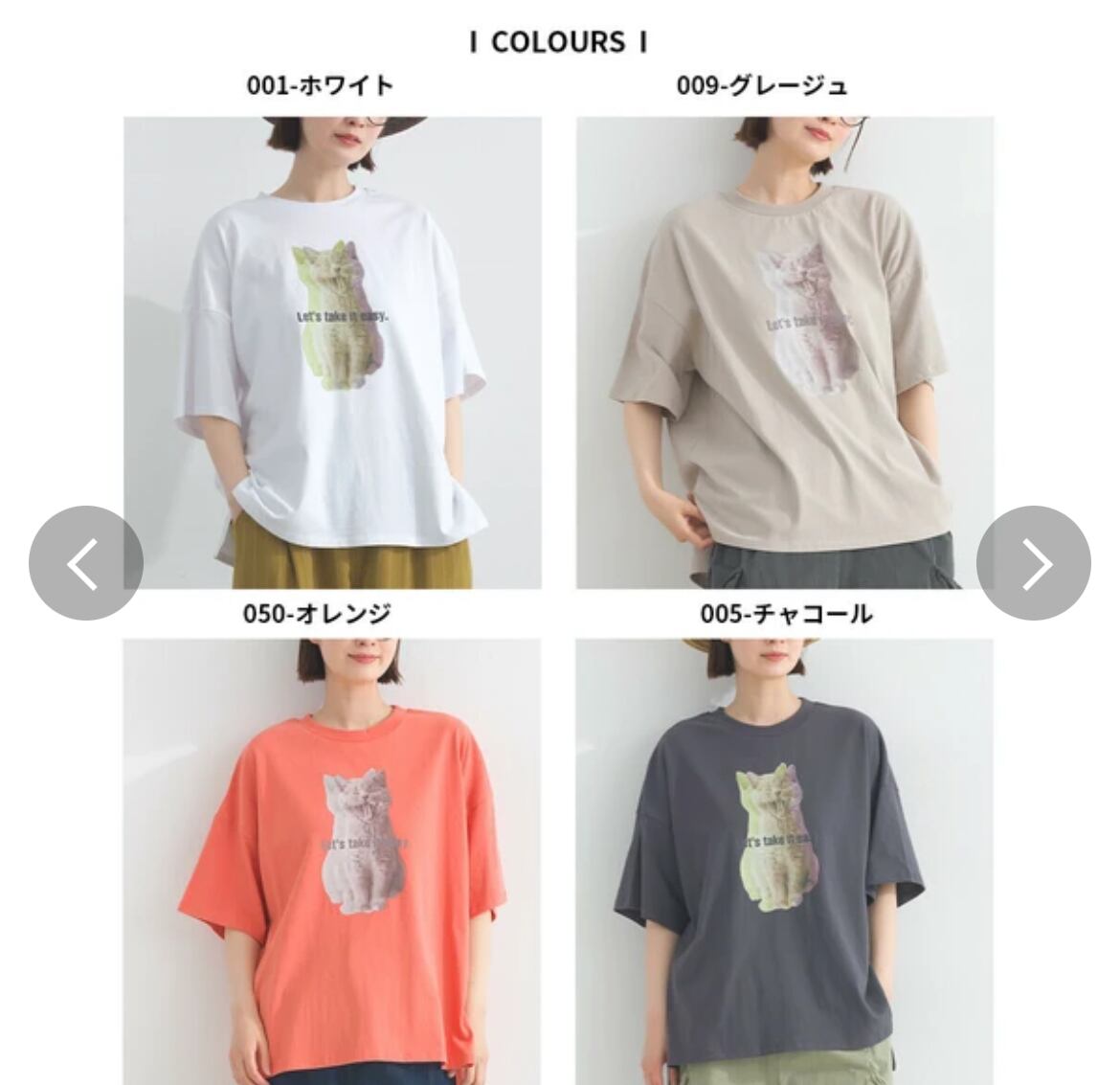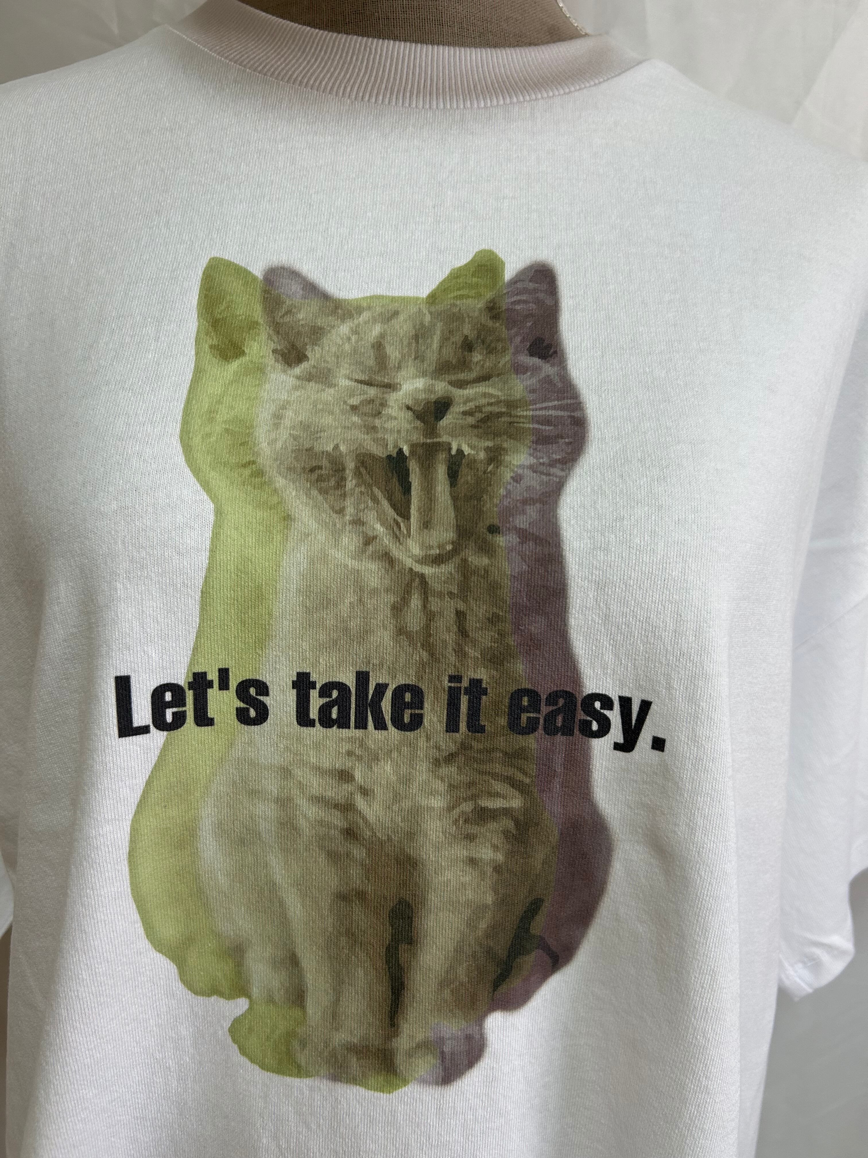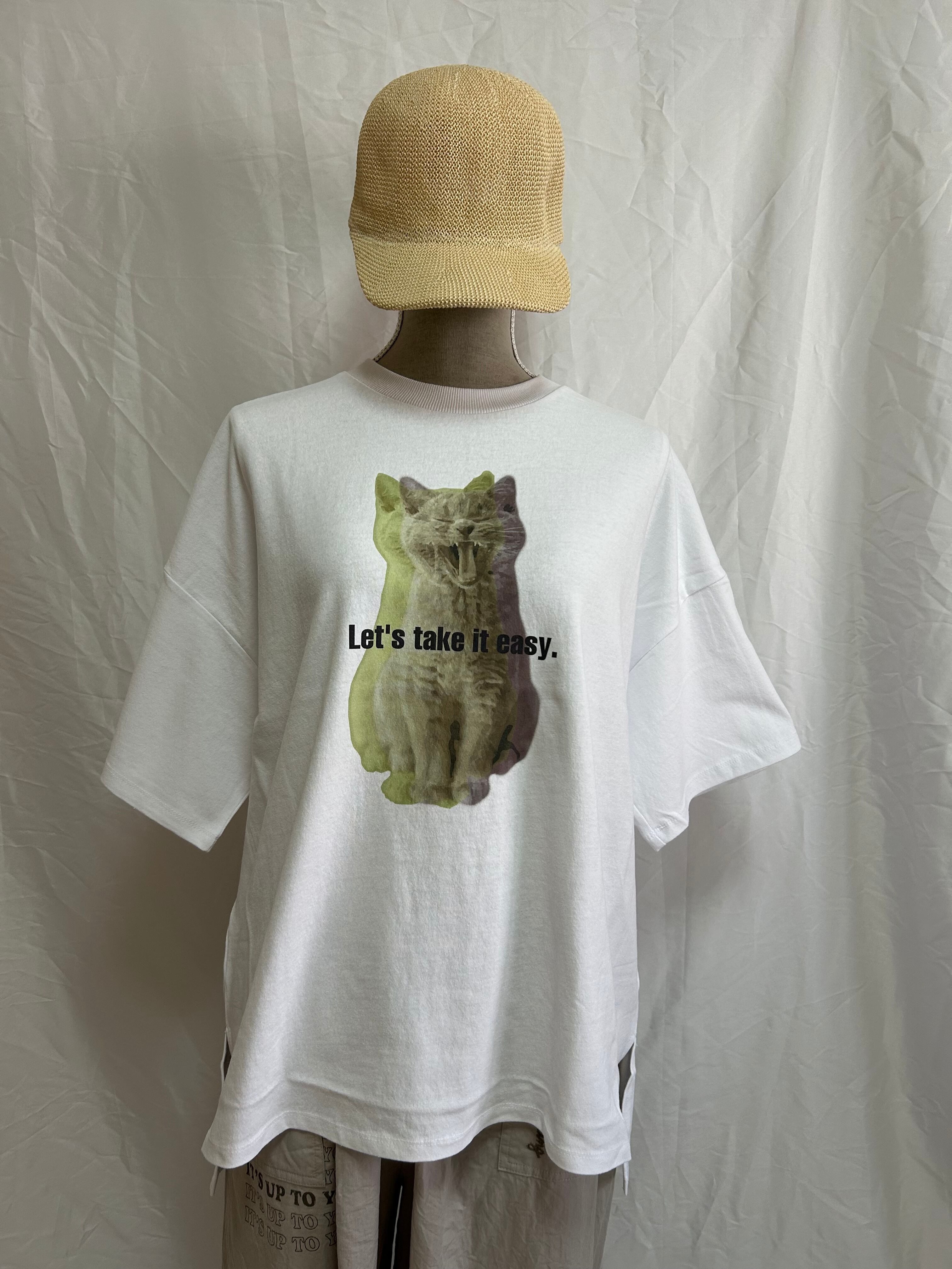 ネコプリントTシャツ / グラデーションプリント / 16番手天竺 / ドロップショルダーTシャツ / ナチュラルカジュアル / リラックスTシャツ / 猫Tシャツ / OE天竺 / ゆるTコーデ / LUPILIEN