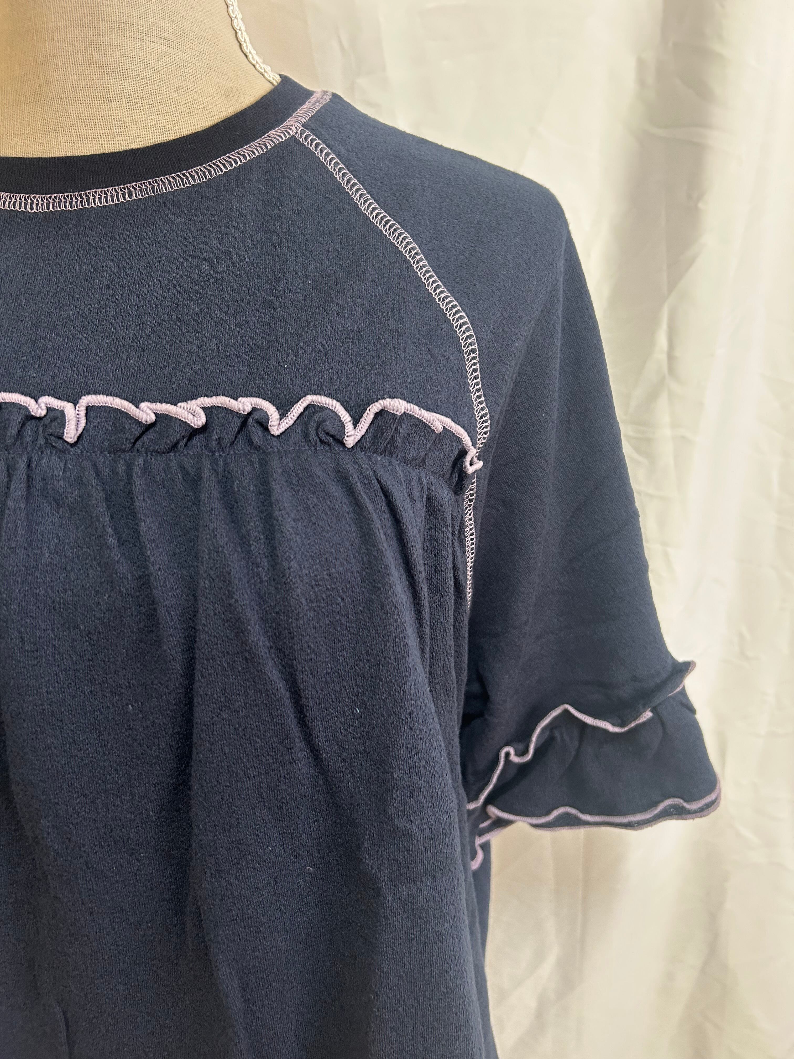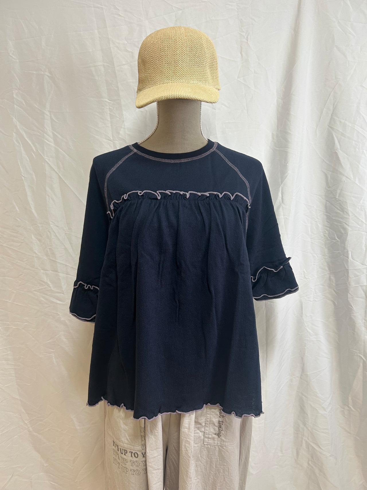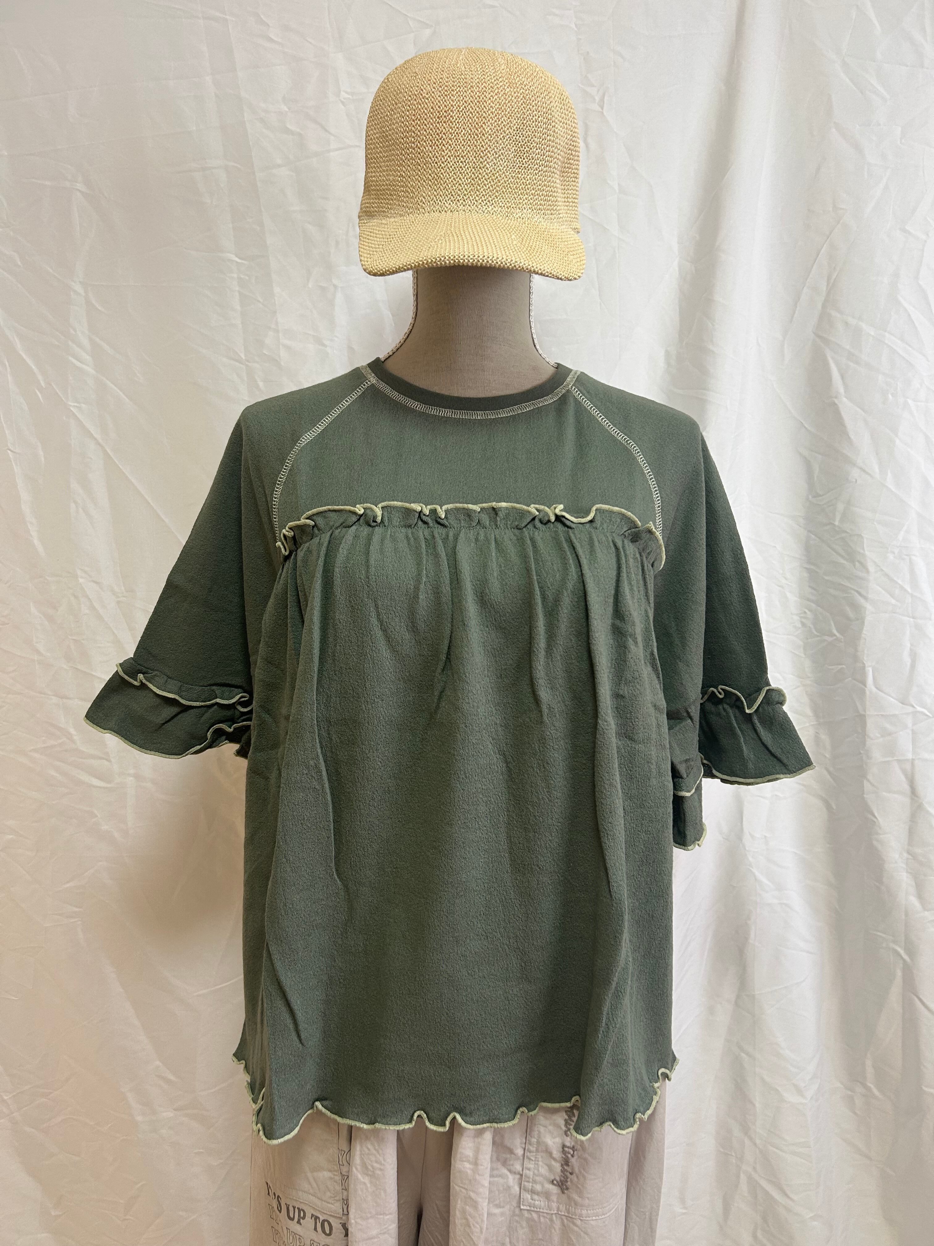 フリルTシャツ / 配色メロウ / ラグランスリーブ / 接触冷感 / カットソー / 夏素材 / 涼感トップス / フェミニンカジュアル / ナチュラルコーデ / ティアード風 / 綿100% / LUPILIEN / レディース / 夏Tシャツ
