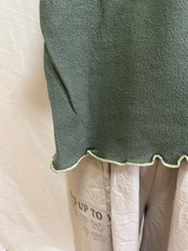 袖口と裾には配色のメロウ始末を施し、動きに合わせて波打つような