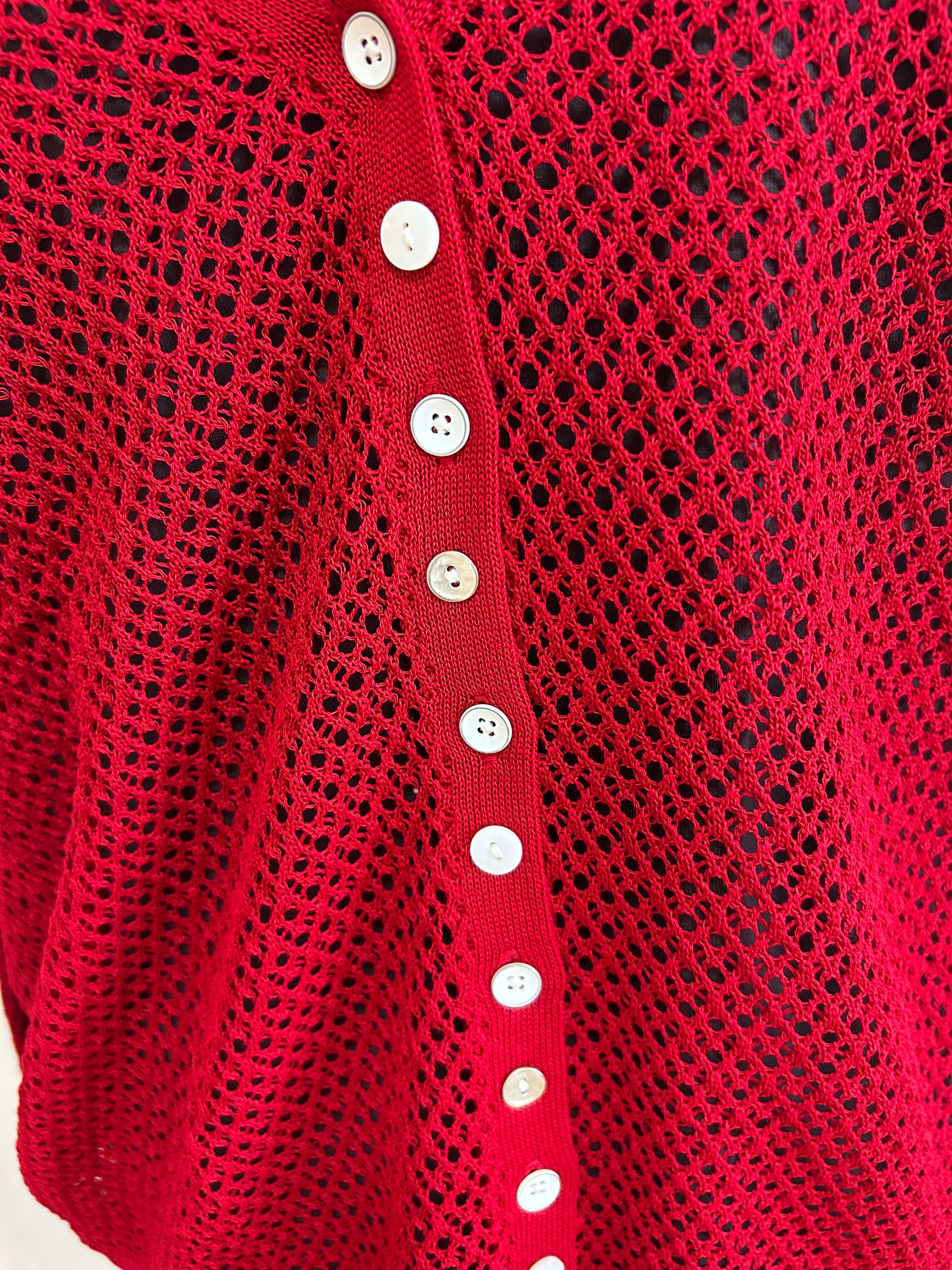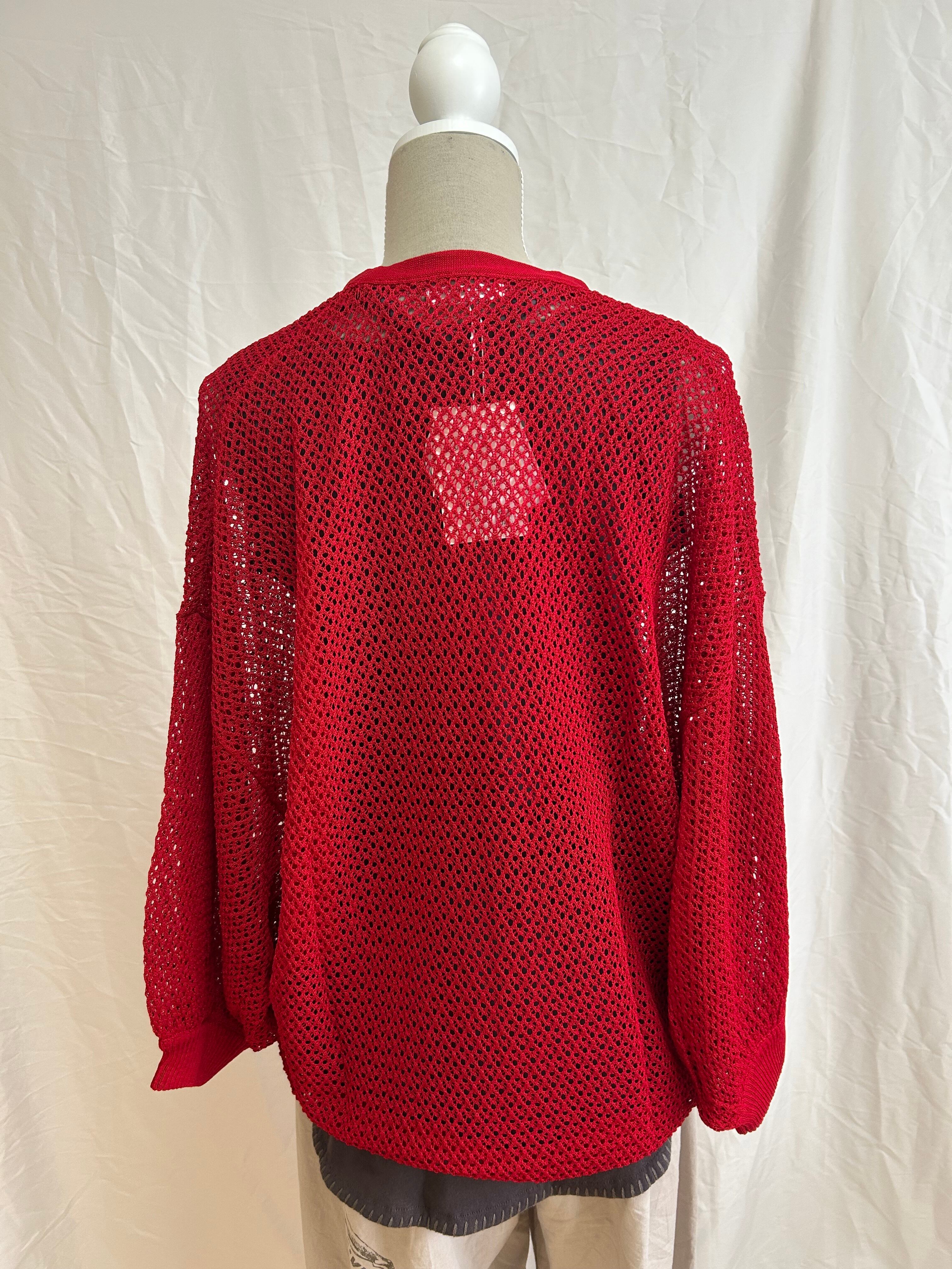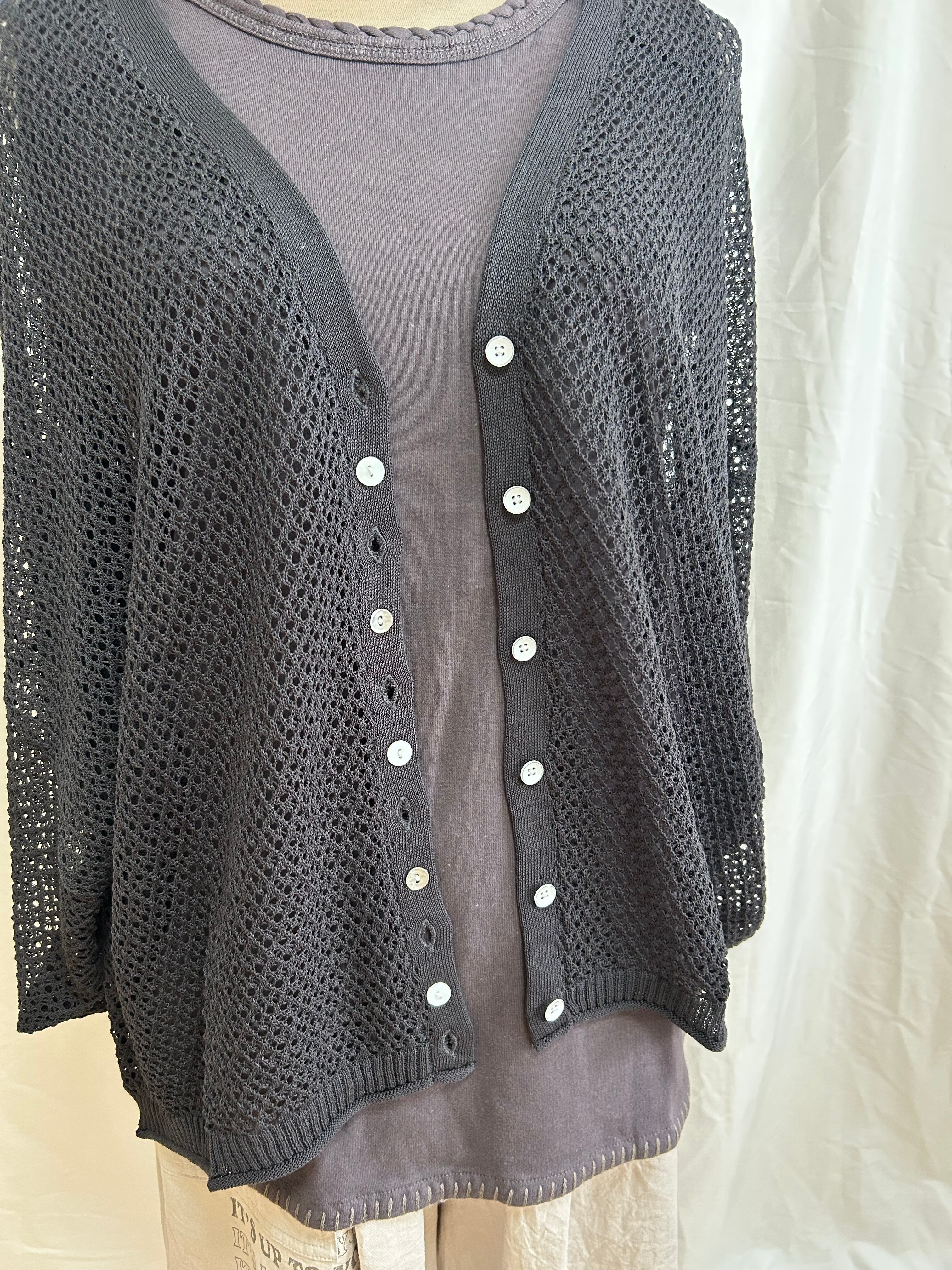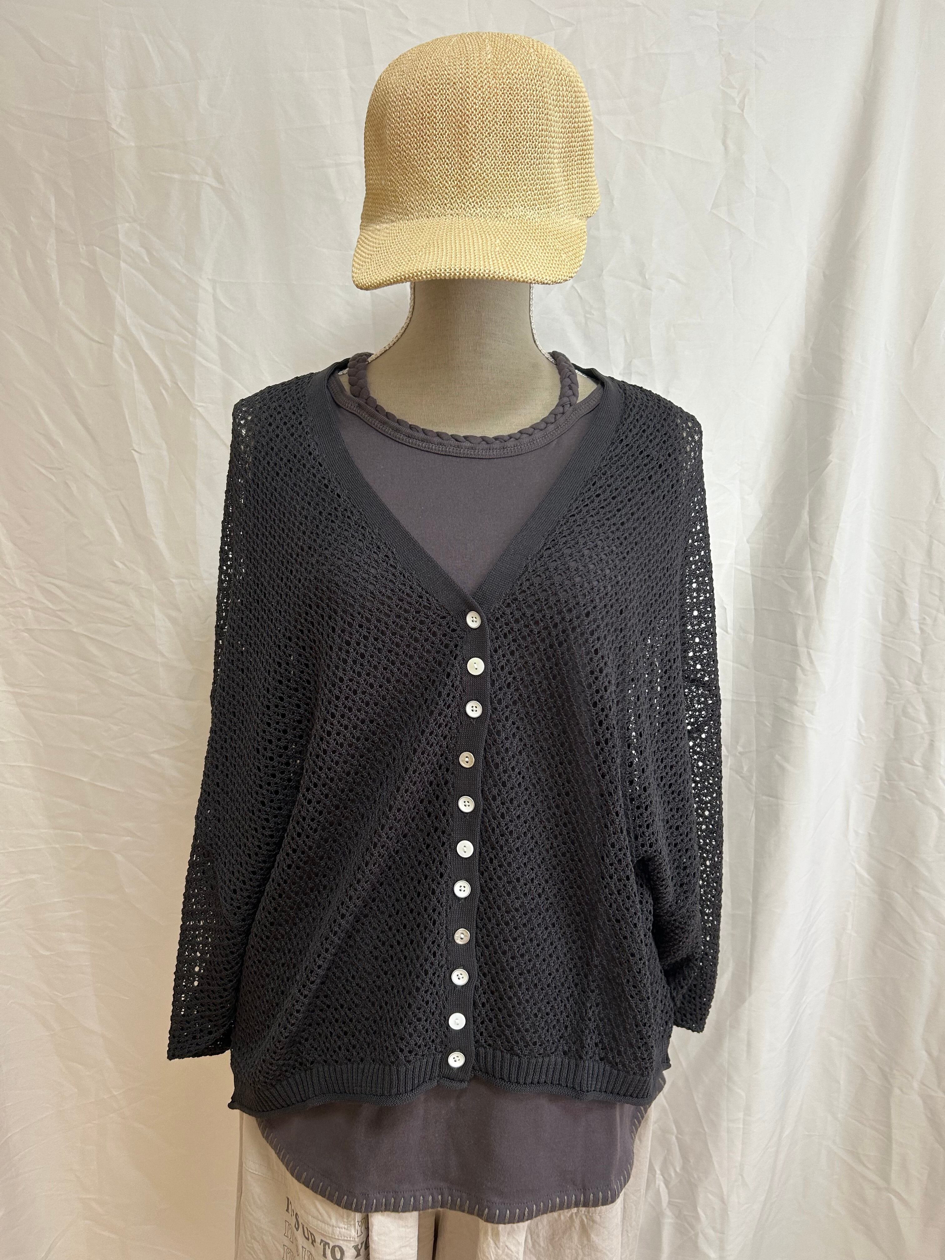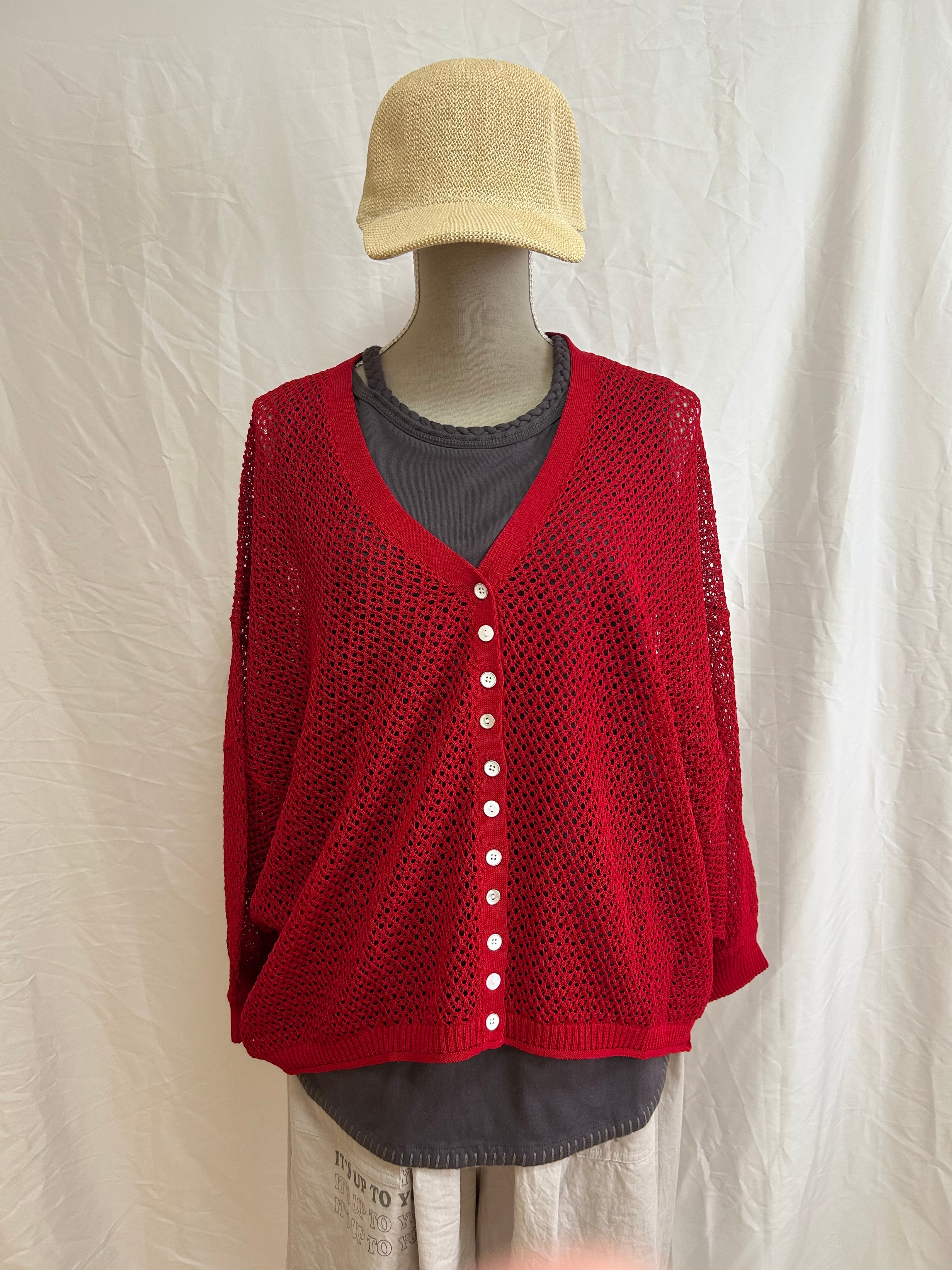 ふんわりと丸みのあるモモンガシルエットが特徴の、涼しげな透かし編みニットカーディガン。
