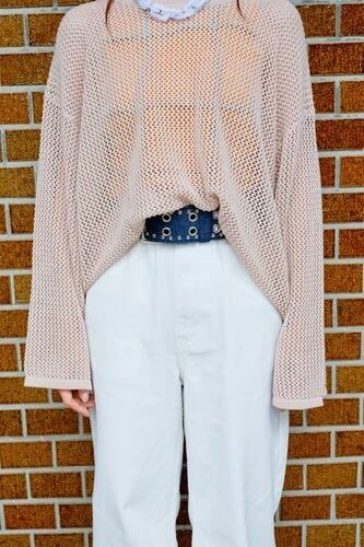MEKKE 透かしロゴニットプルオーバー ベージュ