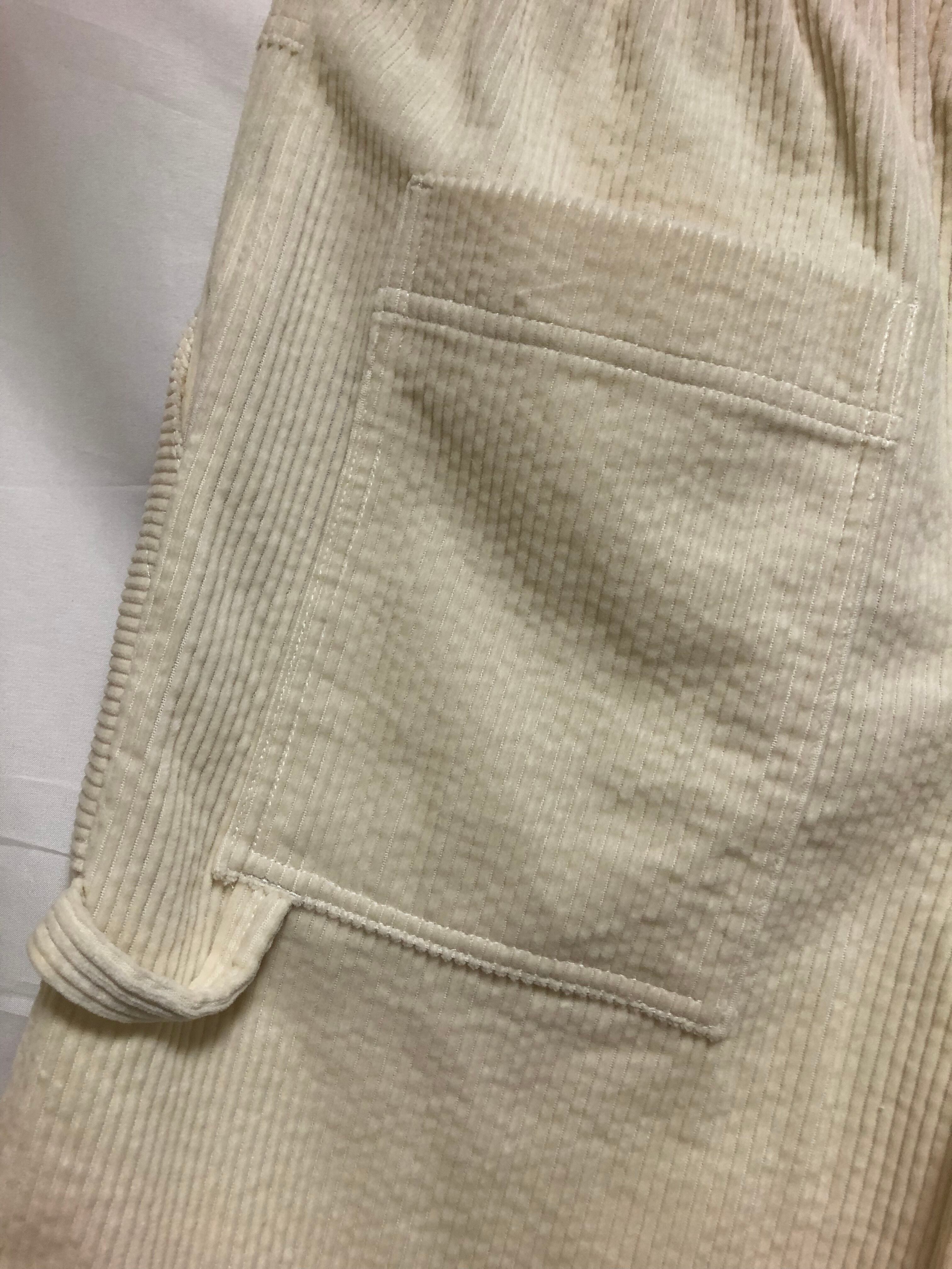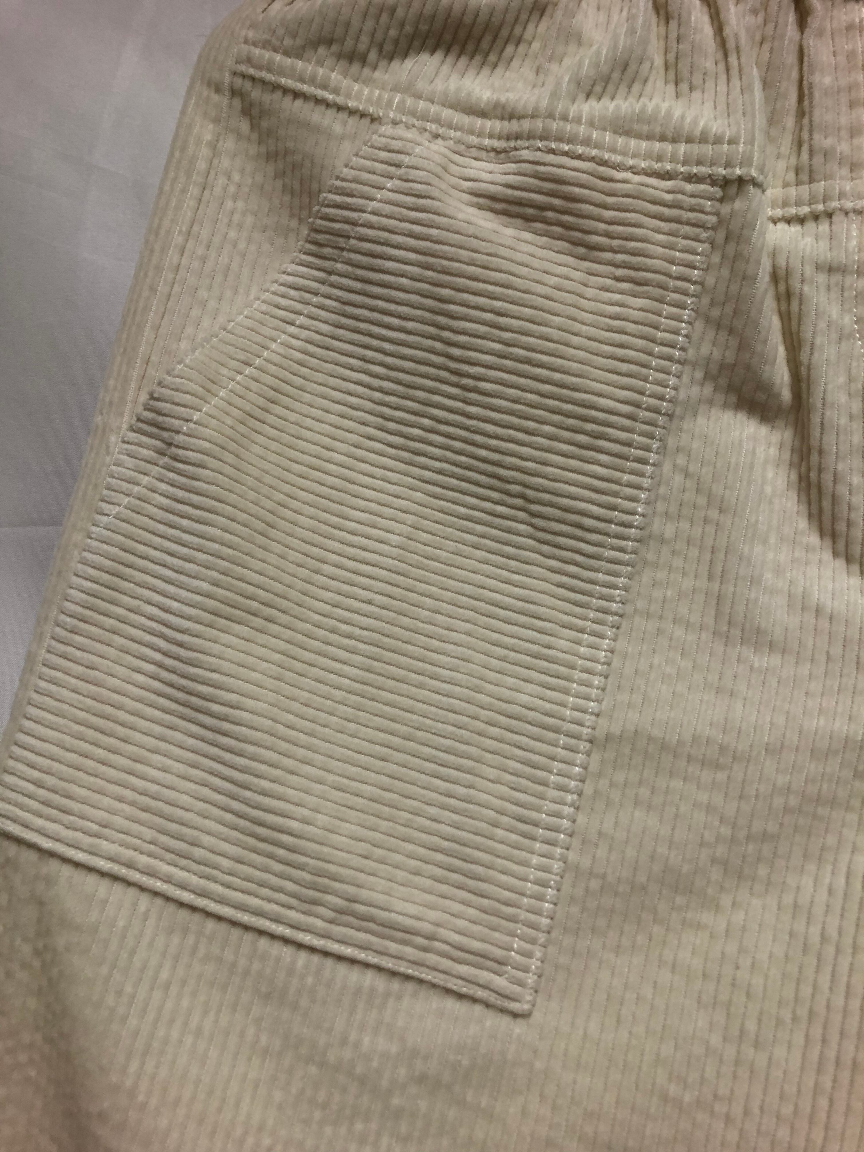 ウォーミーなコーデュロイが秋冬モードに馴染みます。縦長のパッチポケットで立体感をプラスし、左脇にデザインとして付けたハンマーフックも効果的。ゆったりしたワタリ幅や裾裏には別布を使いロールアップ出来るようにしたり、更に進化した1着です。