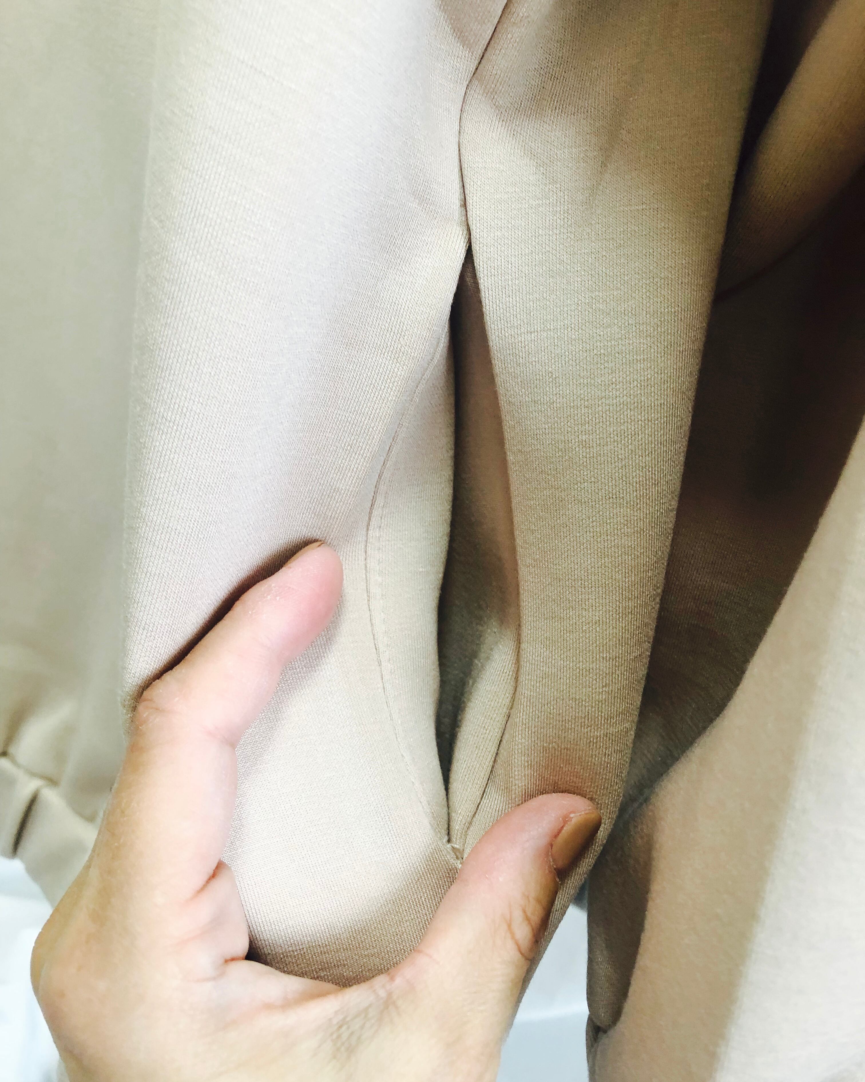 首回りと袖、裾のシャーリングデザインが程よいアクセントに。