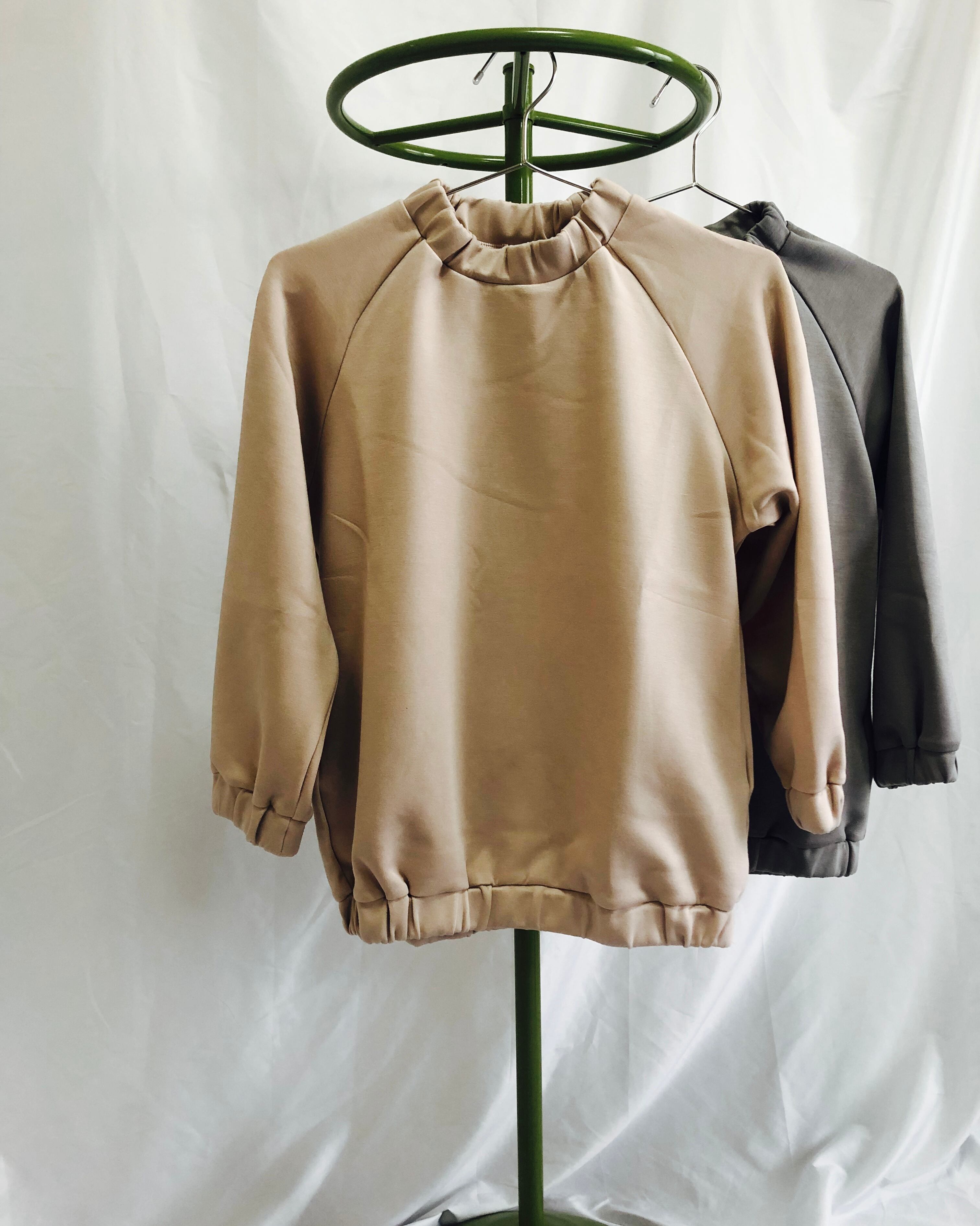 riziere シャーリングデザインダンボールニットトレーナー POWDERBEIGE 1502022秋冬新作
