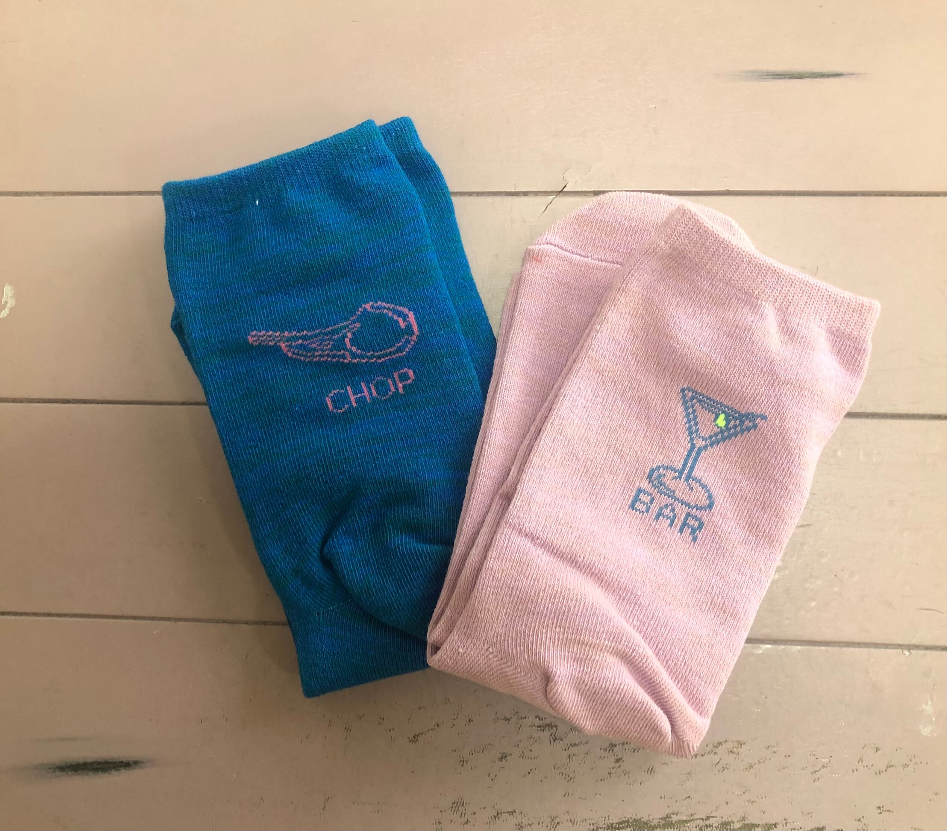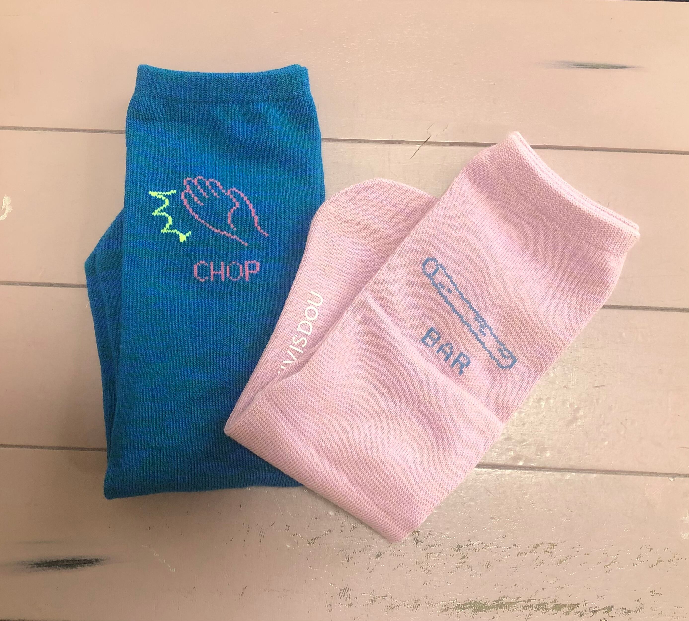 同じ単語が全然ちがう意味をあらわしている面白さを、ソックスの柄にしました。