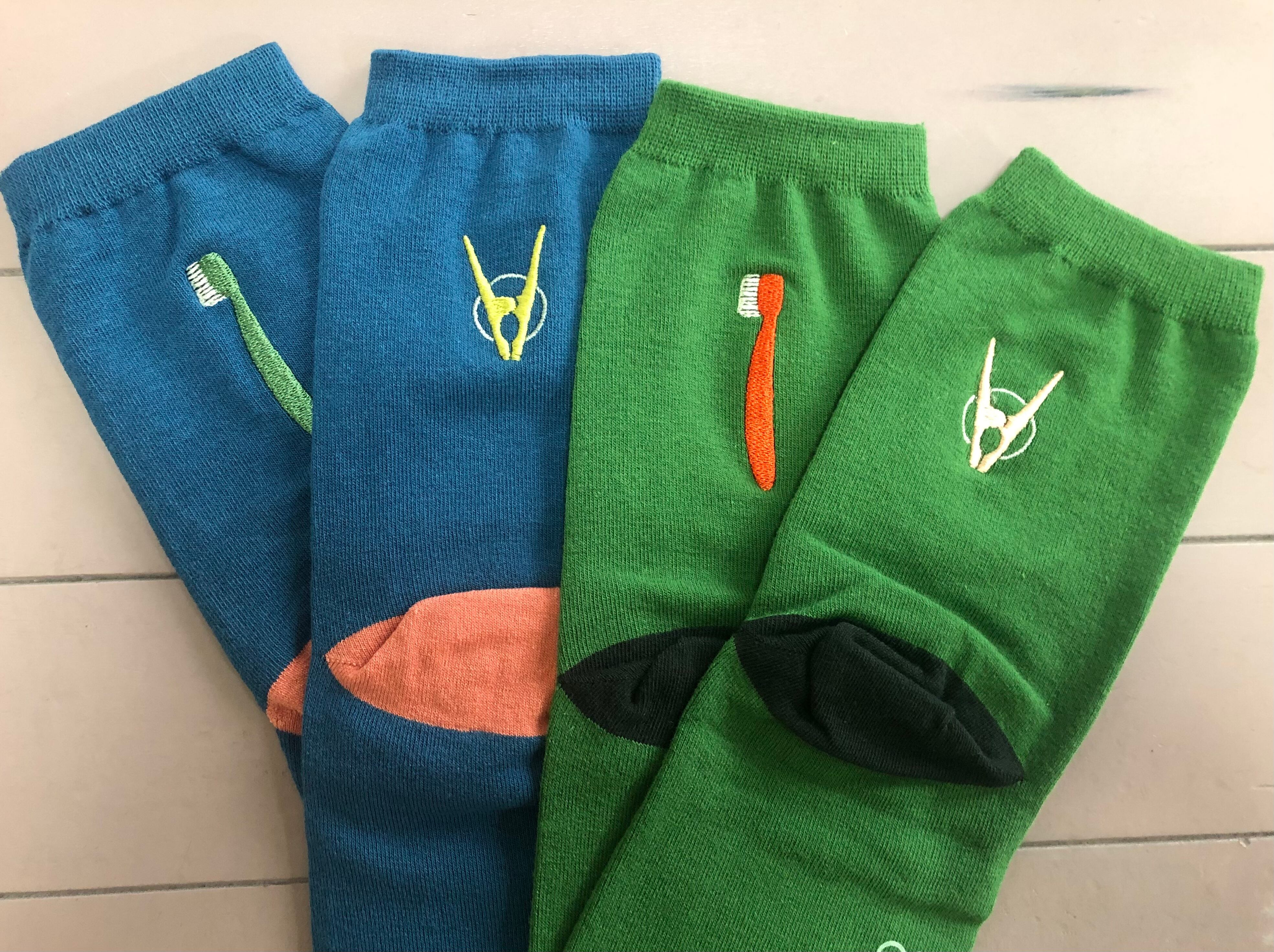 洗濯ばさみと歯ブラシ、とユニークなワンポイント刺繍ソックス。