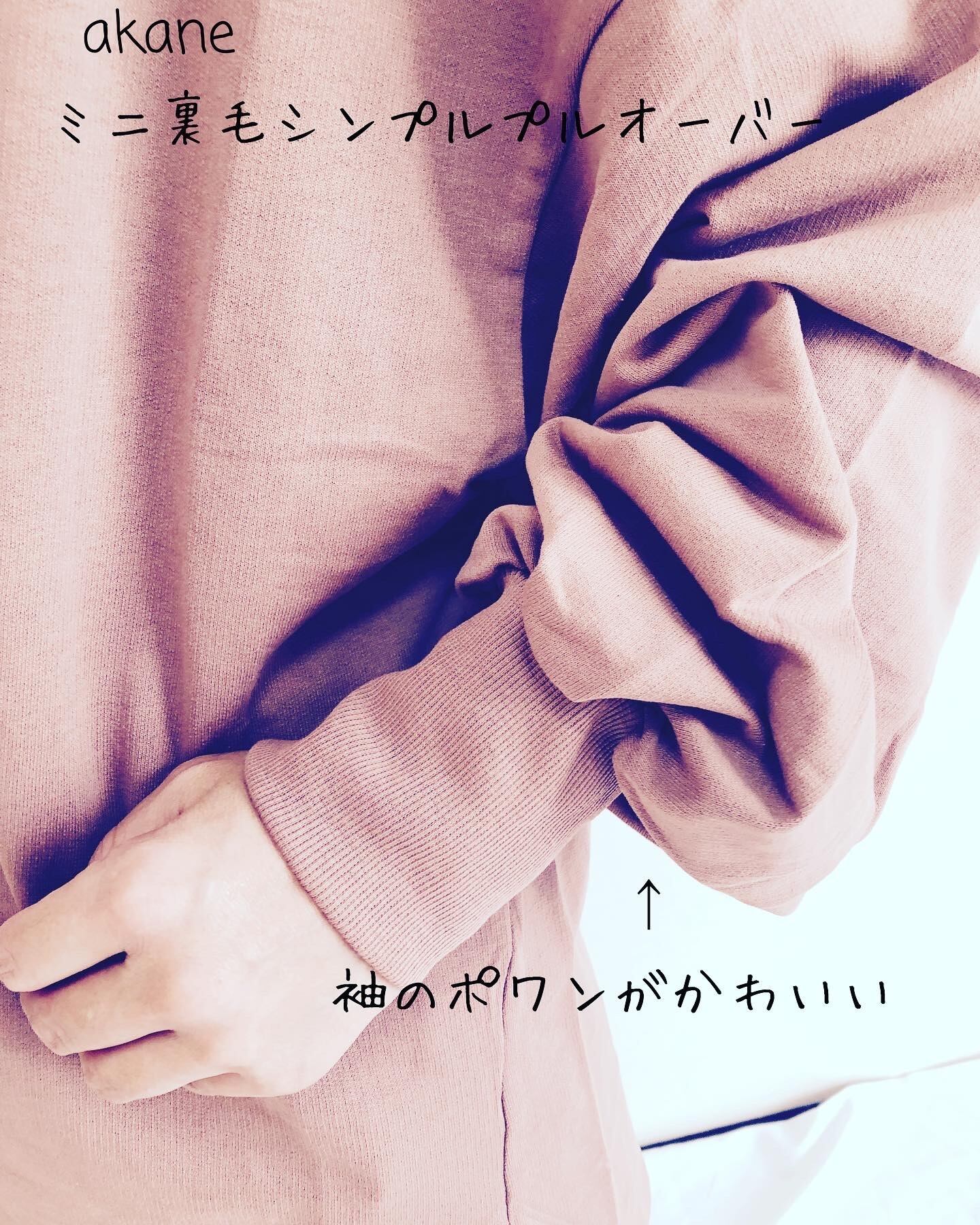 腕が細く見えるようにたっぷりゆとりを入れて袖口でキュッと引き締め、メリハリを。