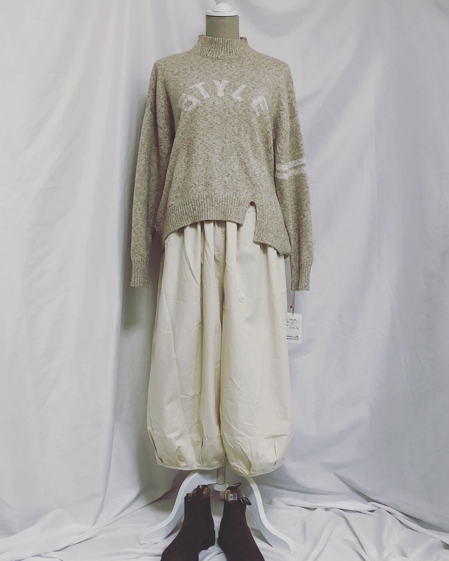 スカートのような見た目のキュロットパンツをボリューム感たっぷり持たせた