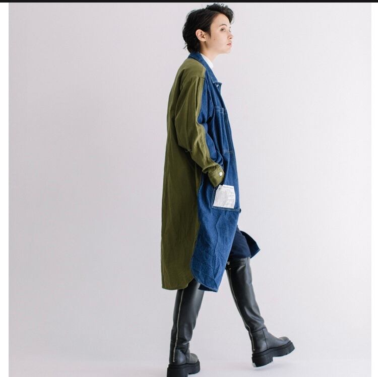 2021AWでご好評頂いたBIG Gジャンに着目した、デニム×ミリタリーの異素材使いLONGカバーオールが新登場。