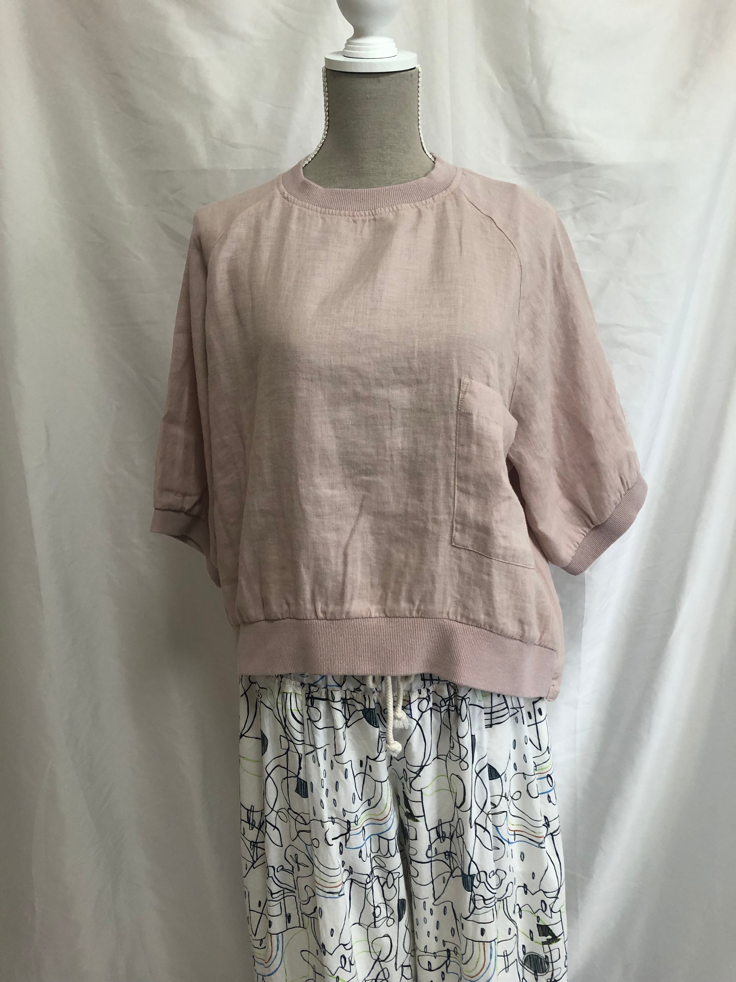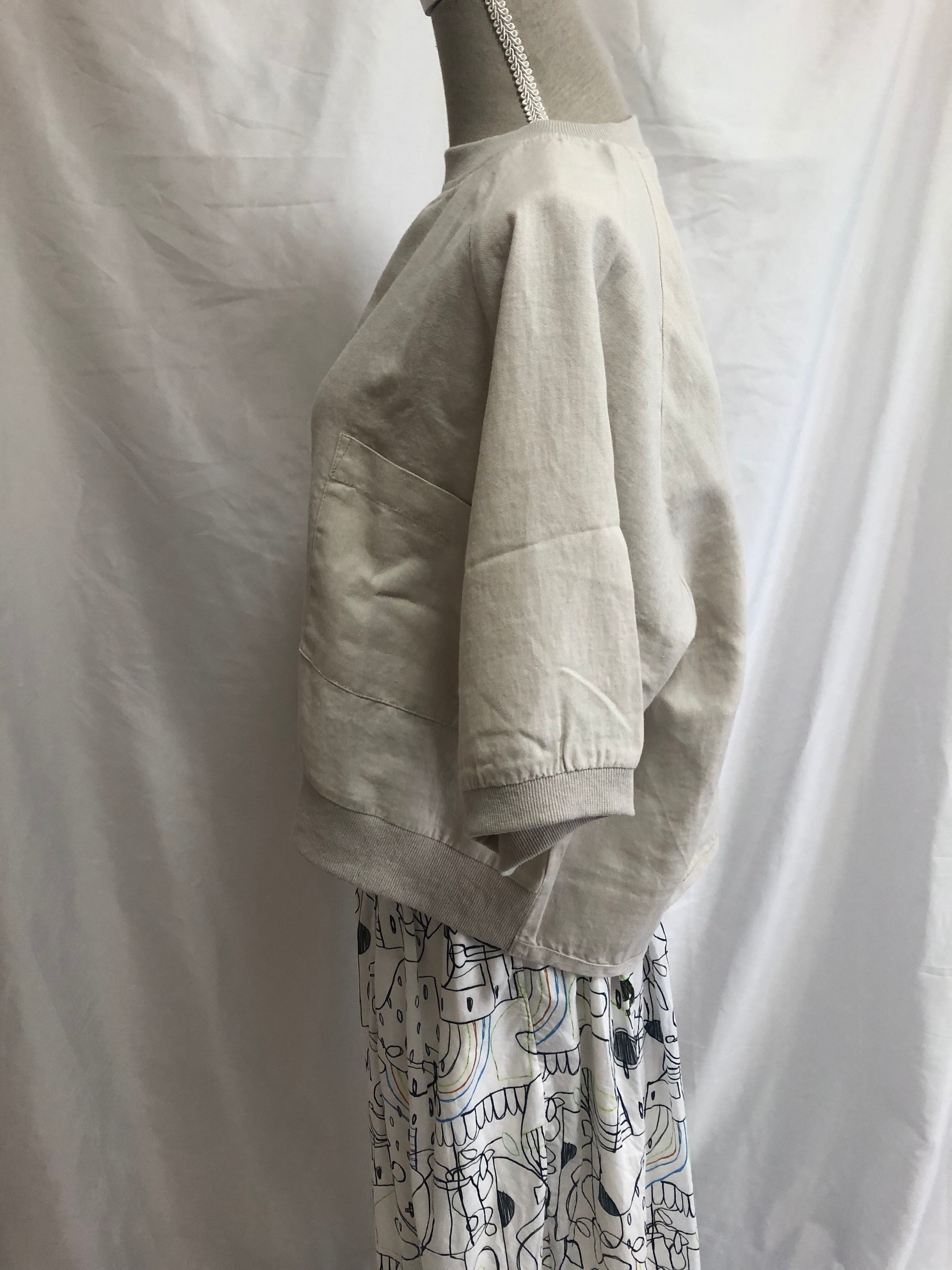 綿麻素材のポプリン生地で仕立てたプルオーバーです。