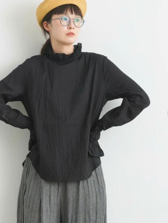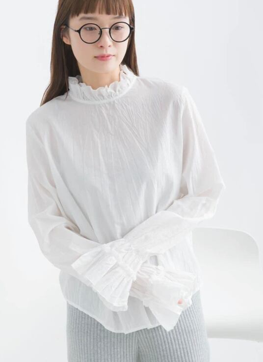 ●綿ローンシワ加工 フリルブラウス クリンクル