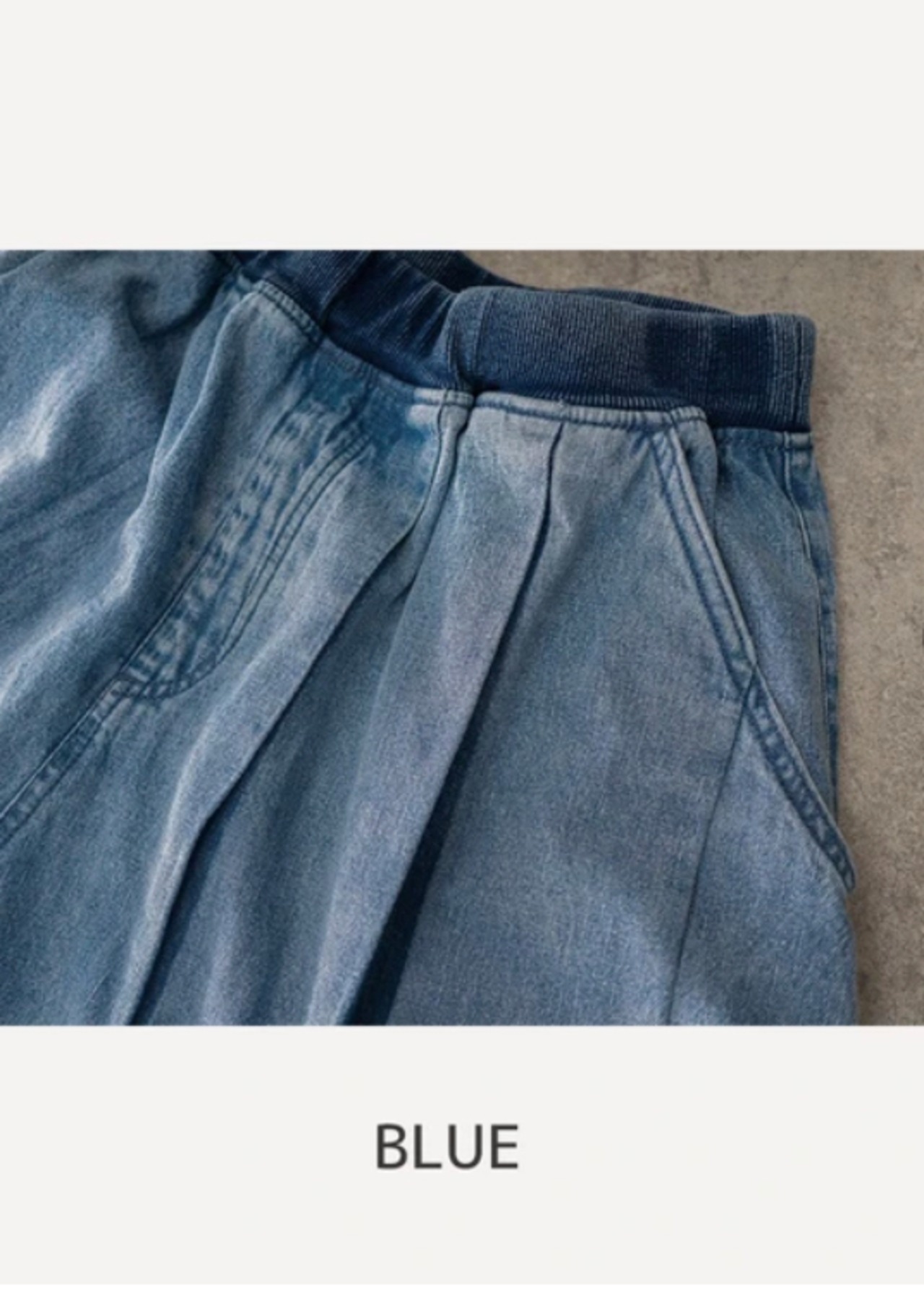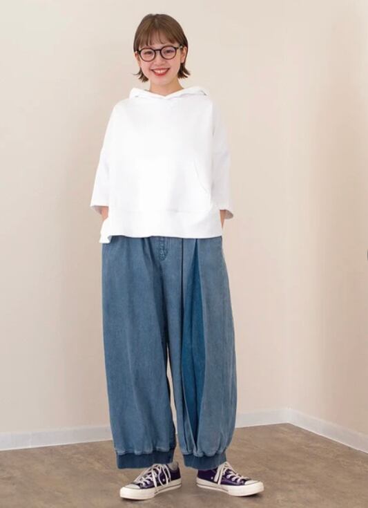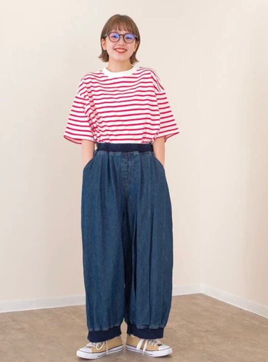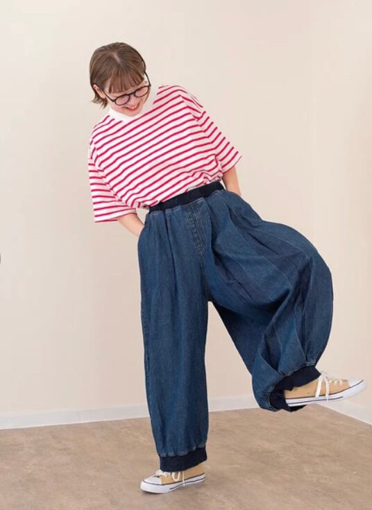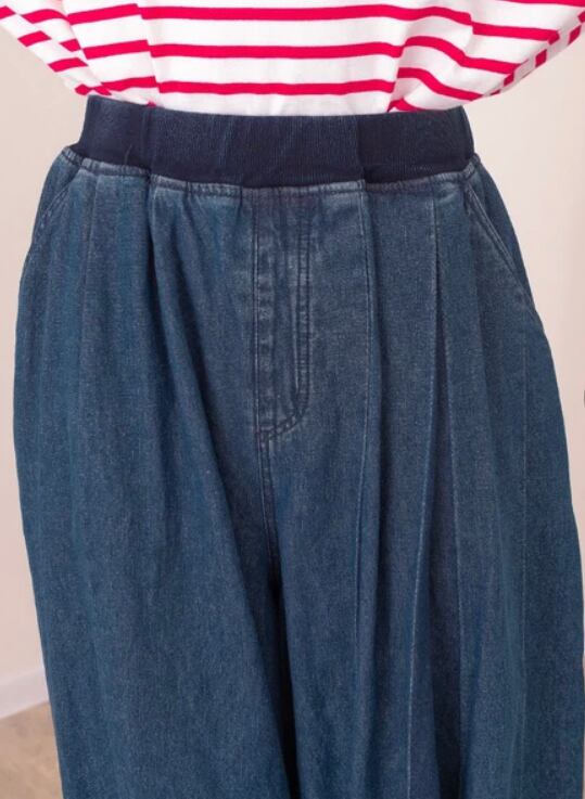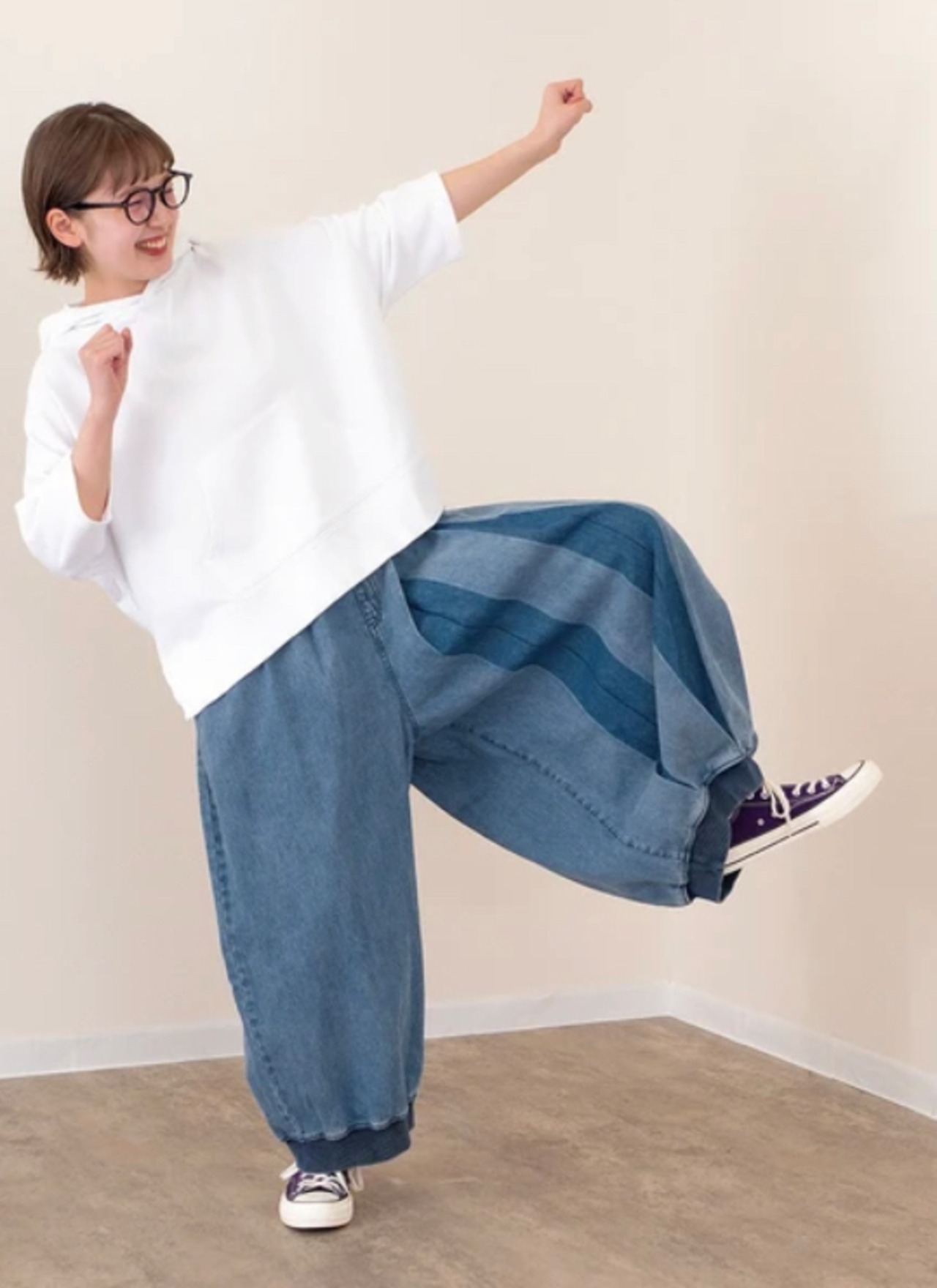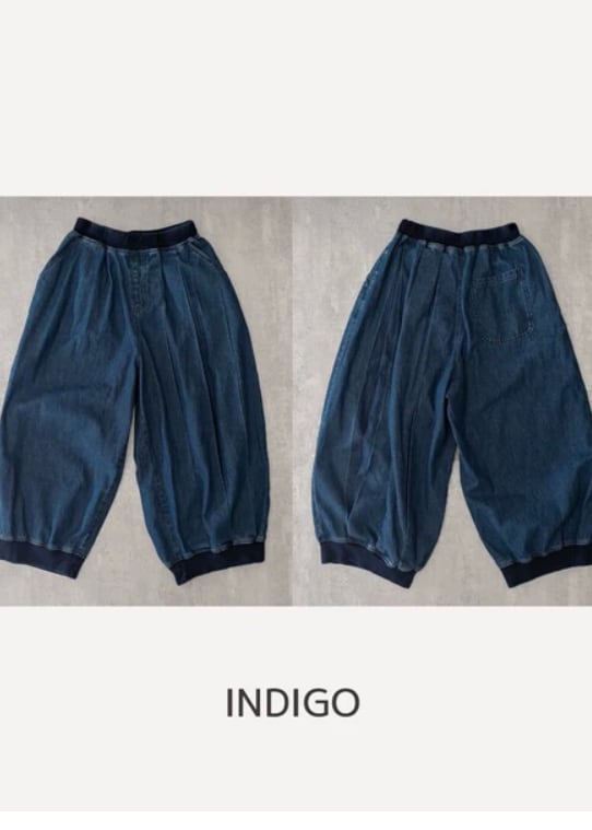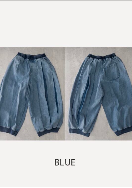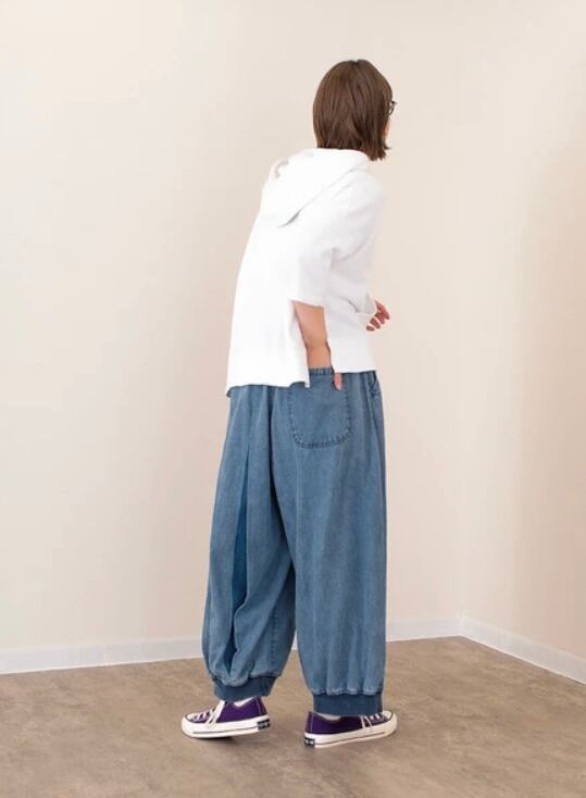 mililopiulu ウエスト裾RIBプリーツデニムパンツ