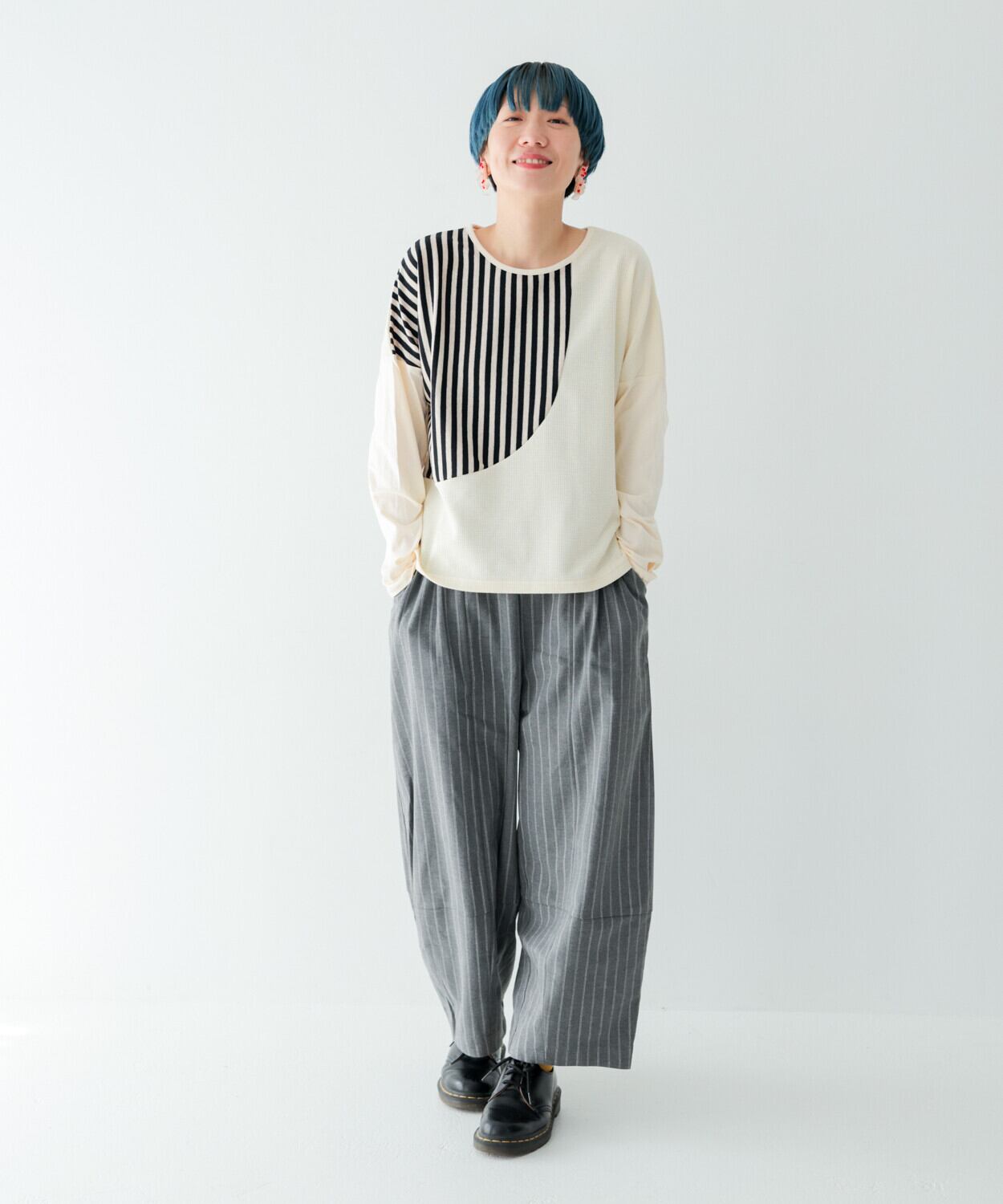 トラッドスタイルでは定番のピンストライプが上品な印象を与えるパンツです。