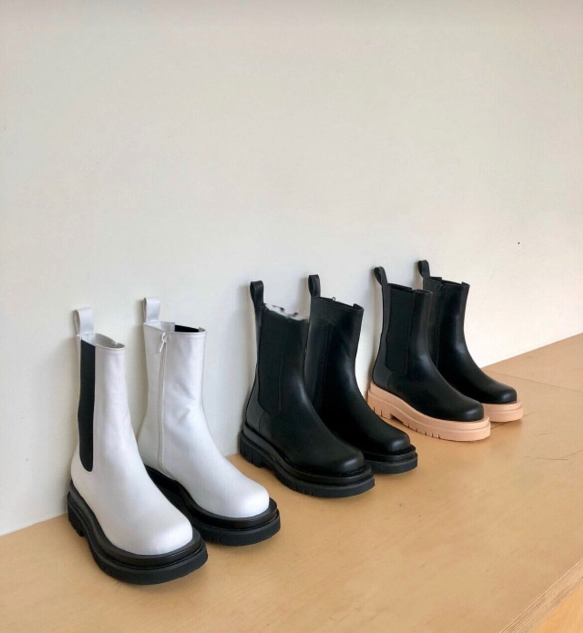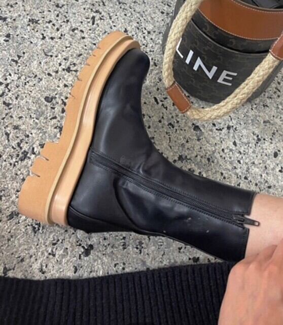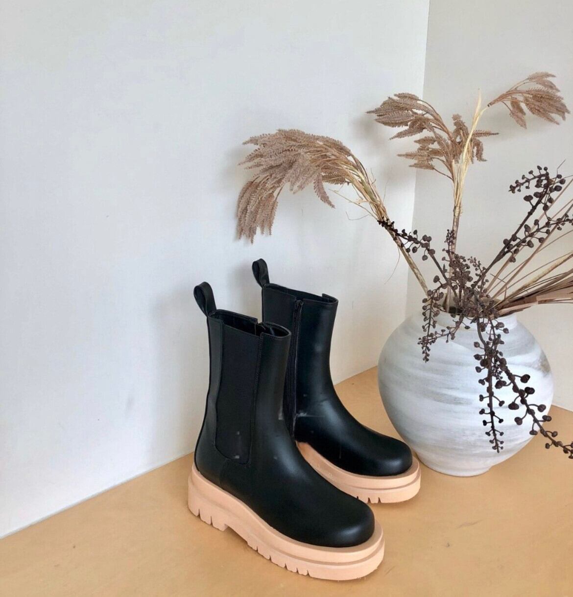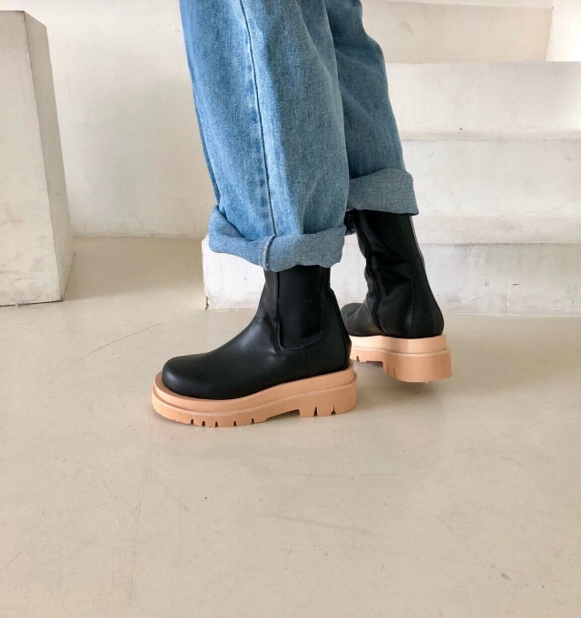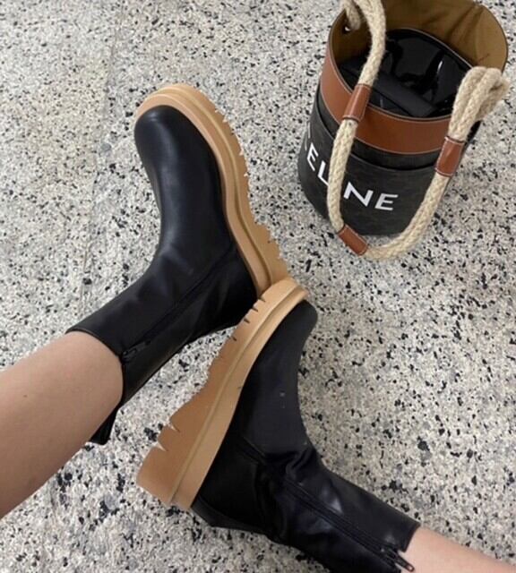 カラーソールサイドゴアブーツ ブラック×ベージュ