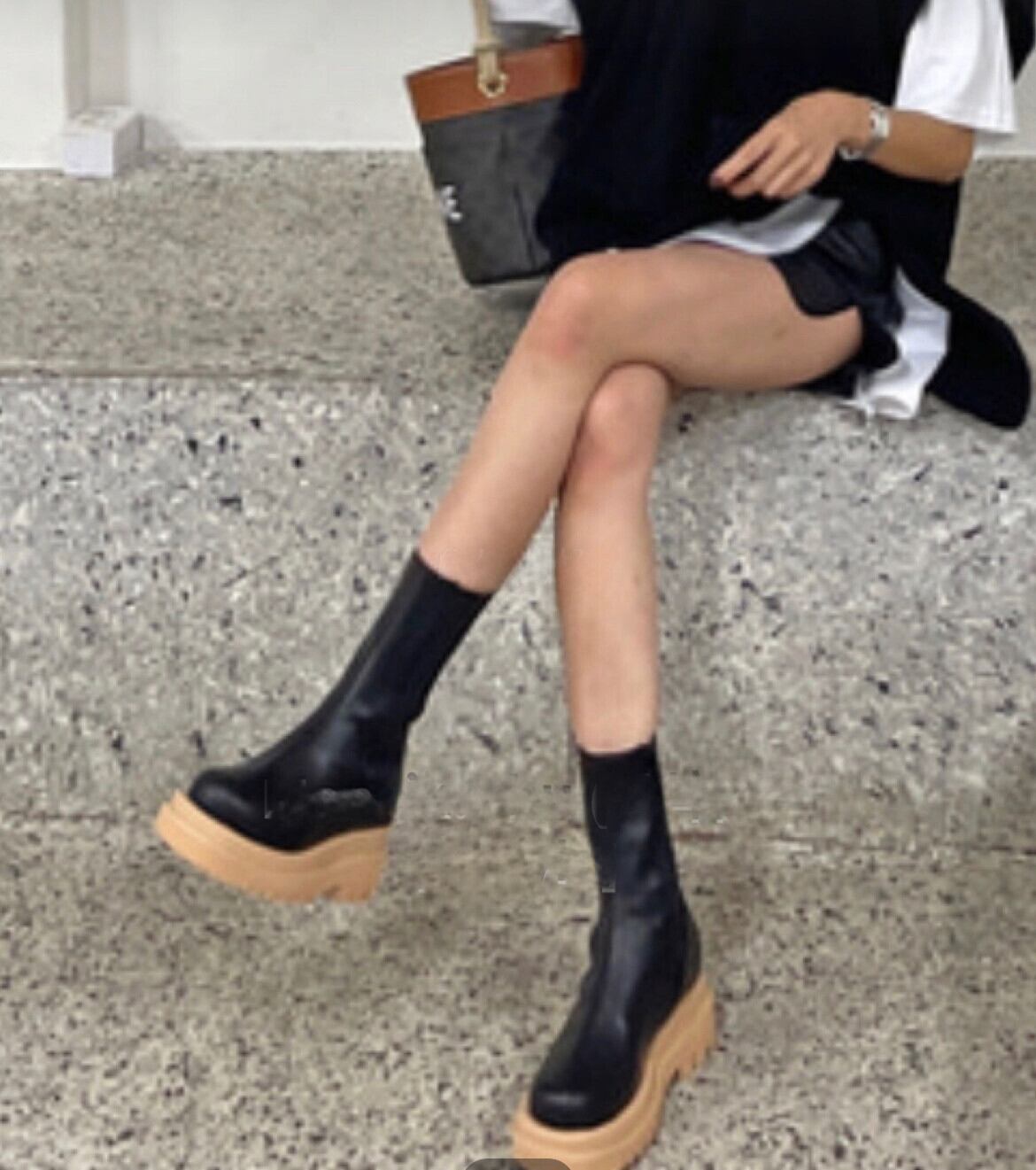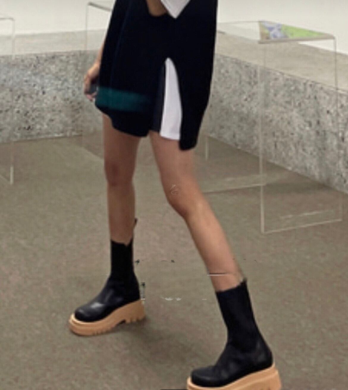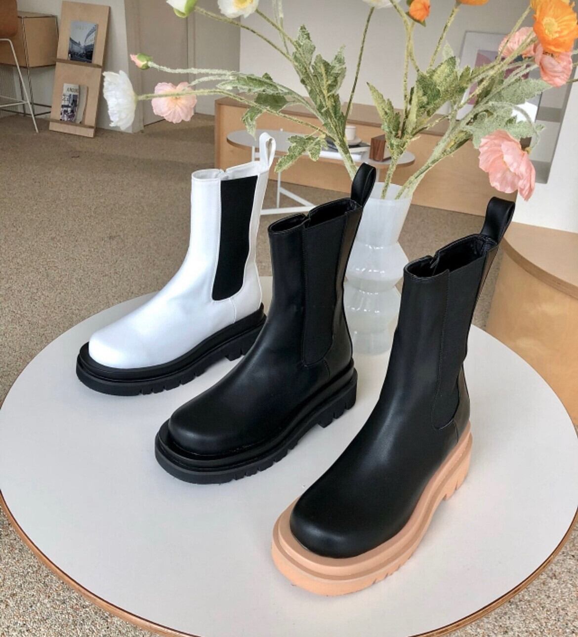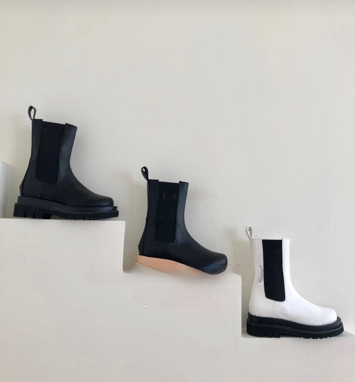 カラーソールサイドゴアブーツ ブラック×ベージュ